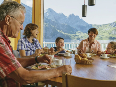 The Douglass Chalet offers: a lakeside terrace with panoramic view, children’s playground, traditional and regional specialities, vegetarian/vegan/gluten-free dishes, a daily mountain breakfast, barrier-free restaurant, and two-, three- and four-bed rooms/storage spaces.