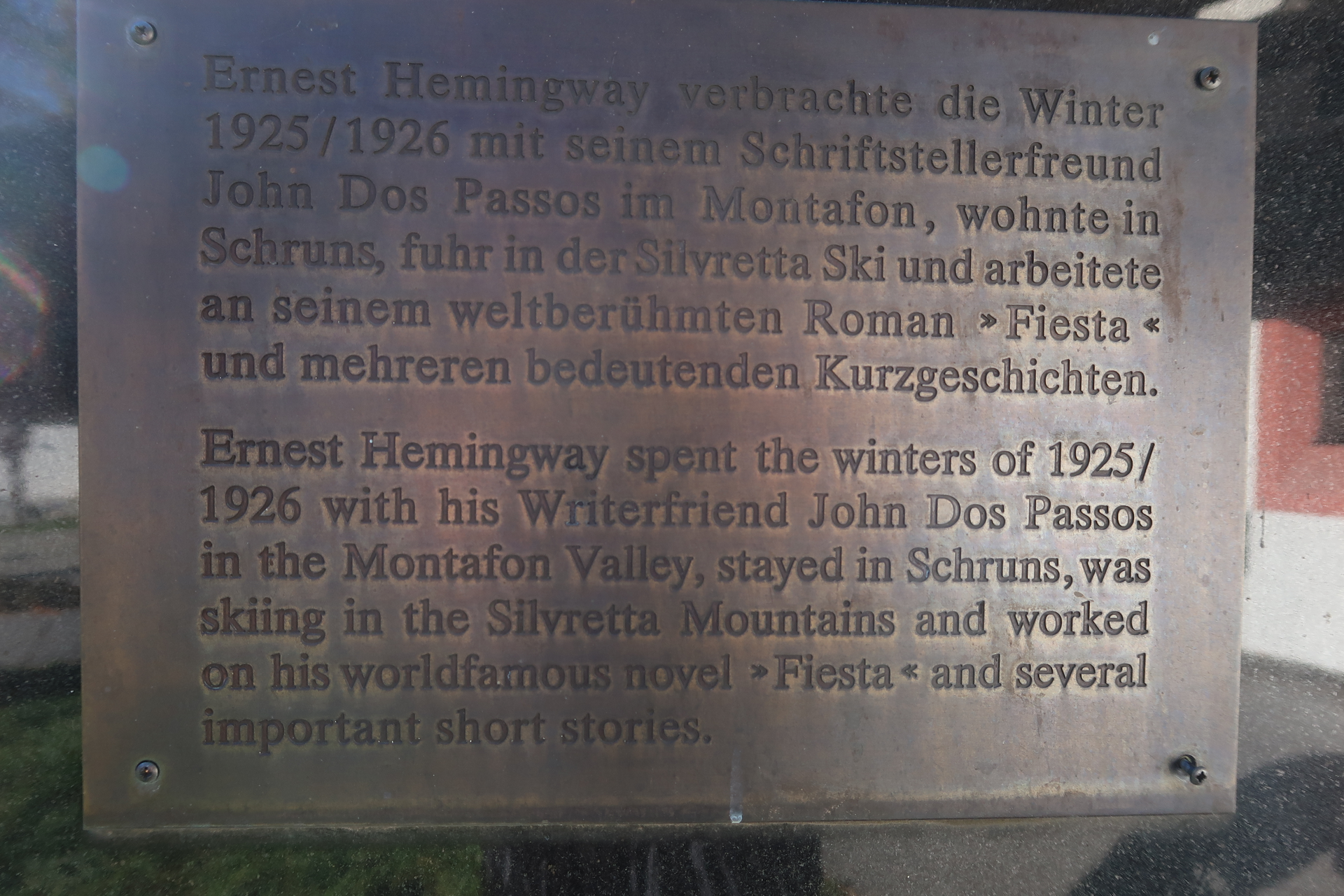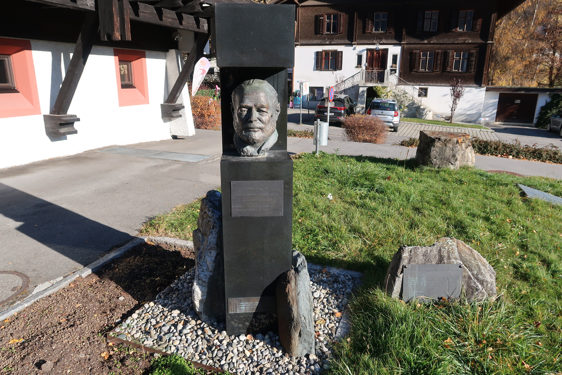 Das Denkmal ist laut den Initiatoren als Teil des Gesamtprojekts "Ernest Hemingway Memorial" anlässlich des 100. Geburtstags des Schriftstellers 1999 zu verstehen - derstandard.at/3278513/Schruns-enthuellt-Ernest-Hemingway-Denkmal