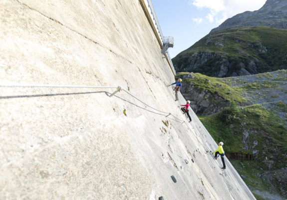 This is the way up! The 320-metre-long fixed rope route with an A/B difficulty level leads you along the impressive dam wall of the Silvretta lake. You can enjoy unique views of the surrounding peaks of the Silvretta with a short break on one of the benches.