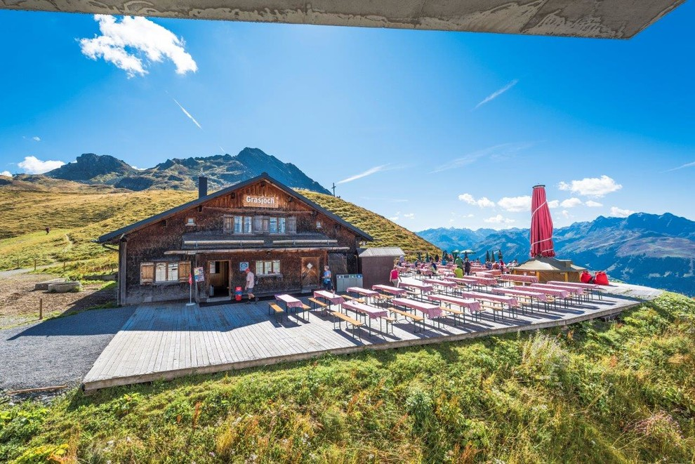 The cozy lodge on Grasjoch is located in the Freeride Eldorado, next to the Snowpark Montafon. Stop off for a quick snack to ready yourself for the next turns and tricks. Next door, the umbrella bar provides the perfect place to celebrate.
