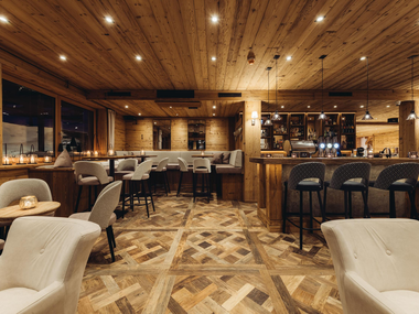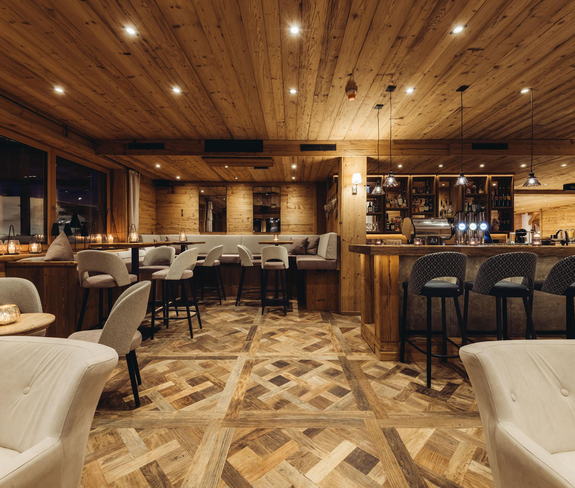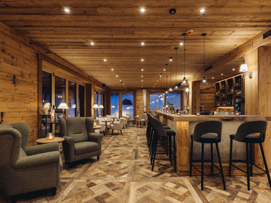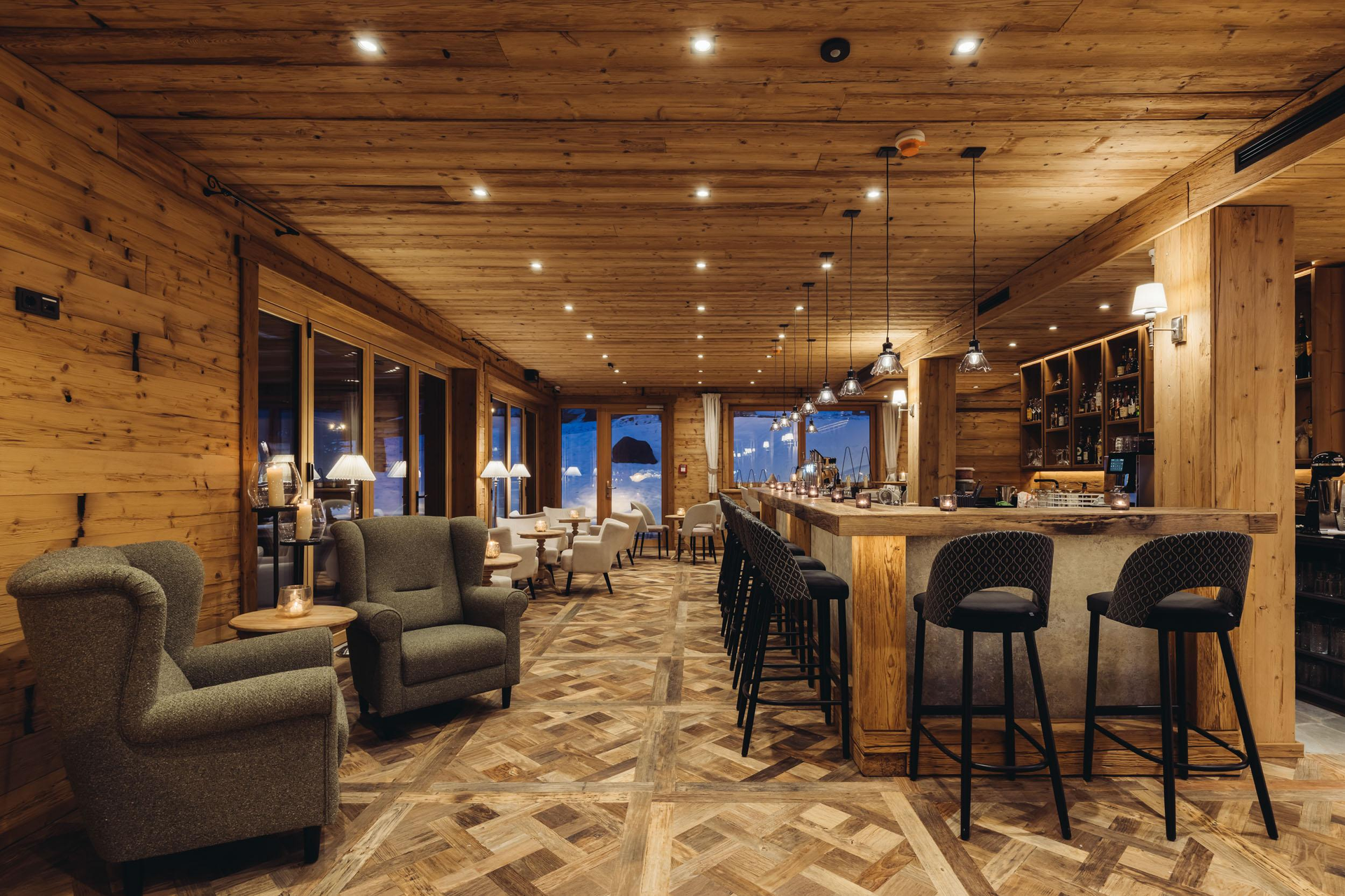Das Feuer am Kamin beobachten, hin und wieder den Ausblick auf das Tal genießen und die Wärme des Holzes auf sich wirken lassen. Die Herzstück Bar schmeichelt mit ihrer urgemütlichen Atmosphäre und dessen atemraubenden Ausblick auf das Tal und St. Gallenkirch. Die Panoramafenster erlauben ein entspanntes Zusehen beim wilden Tanz der Schneeflocken.