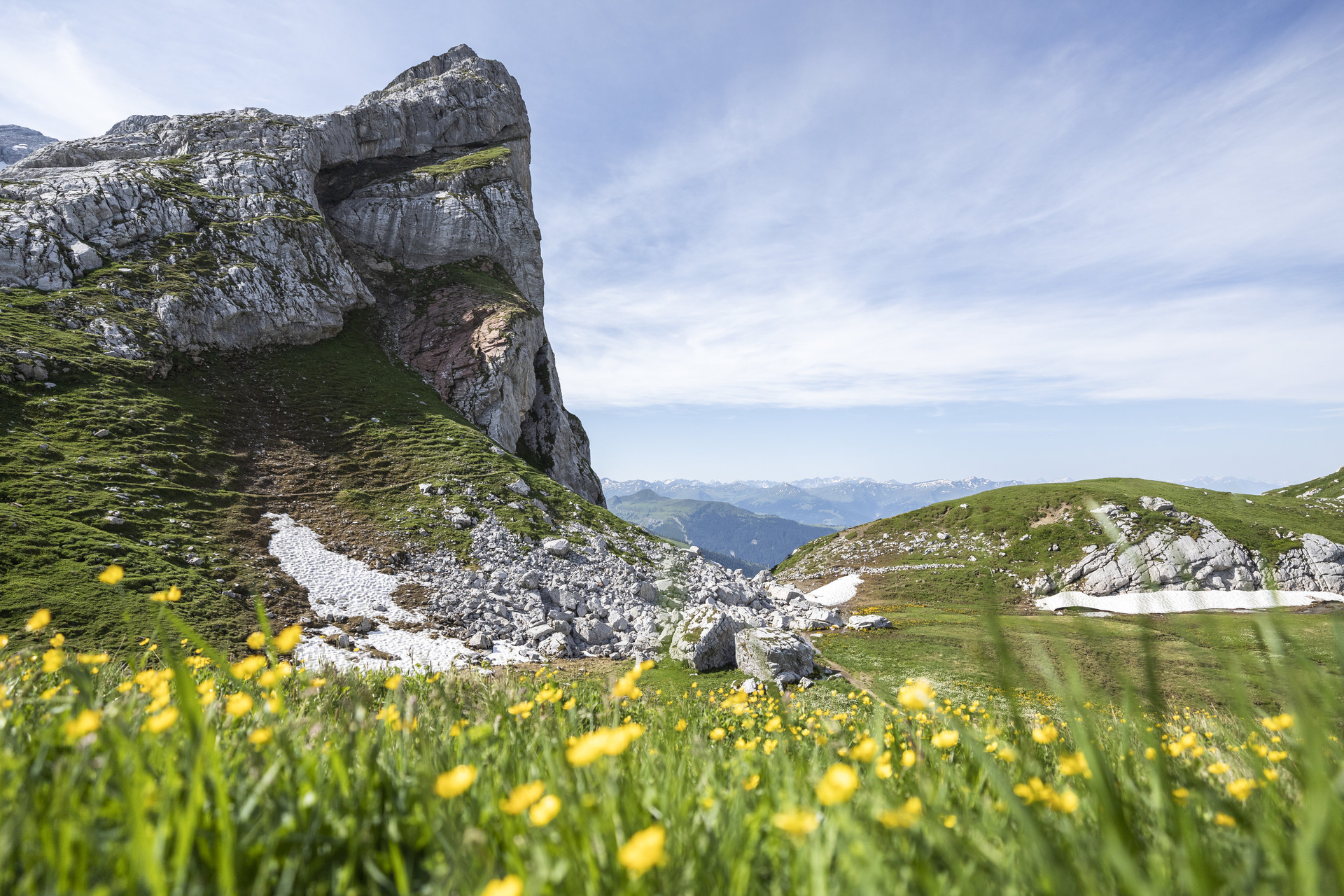 From the Totalp Hut, it goes above the Lünersee and past the Lünersee-Alpe further to Vera Joch. From here you already have the first view of the impressive Swiss Gate before it goes over the Öfapass to the Lindauer Hut.