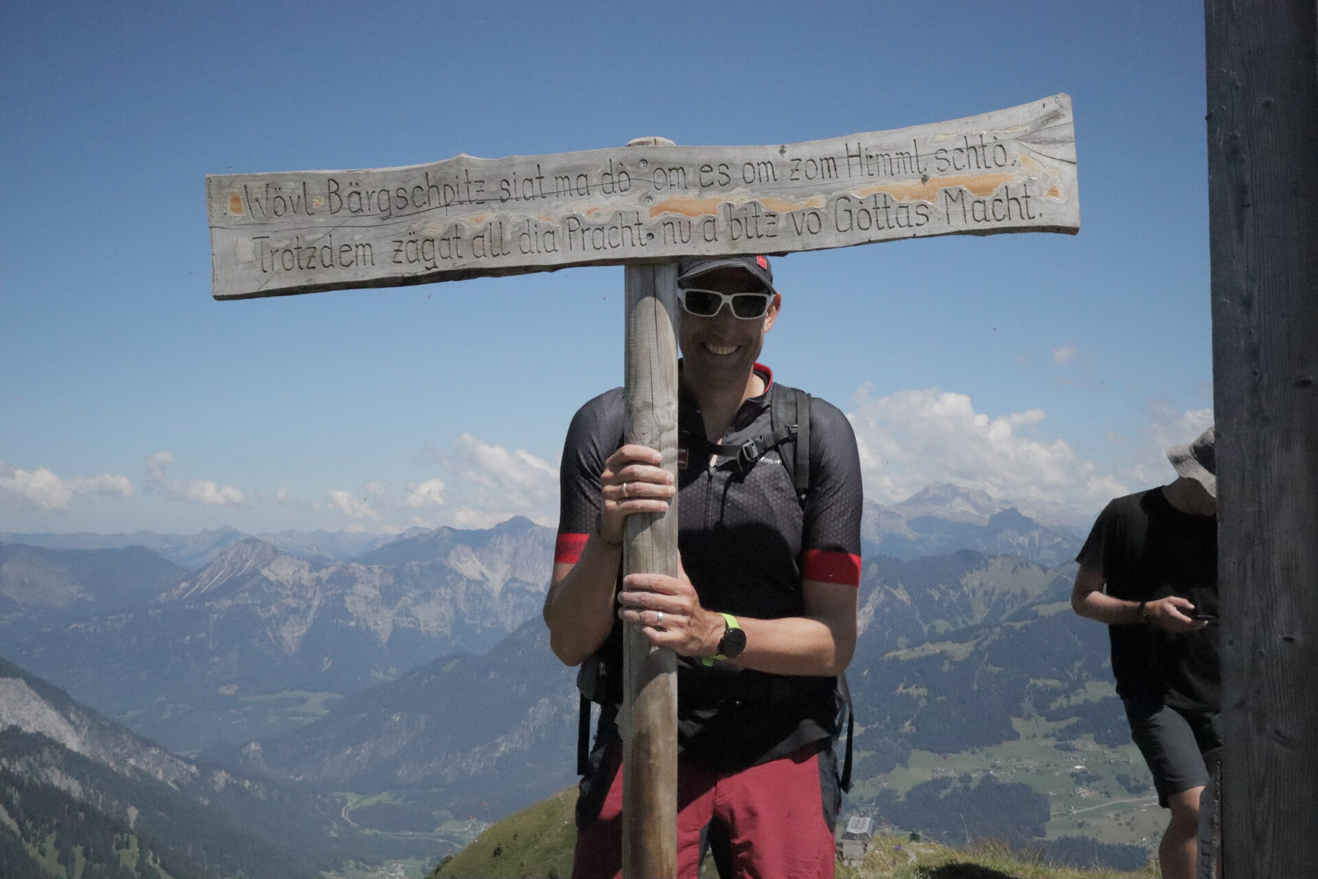 Angekommen am Golmer Joch, ist uns das Staunen in den Gesichtern anzusehen. Die gesamte Gruppe genießt mit Ruhe den wunderschönen Ausblick auf das Verwall- und Rätikongebirge. Die Faszination dieser Tour ist, dass sowohl Gipfelsieg als auch (E-)Mountainbiken miteinander verknüpft werden.