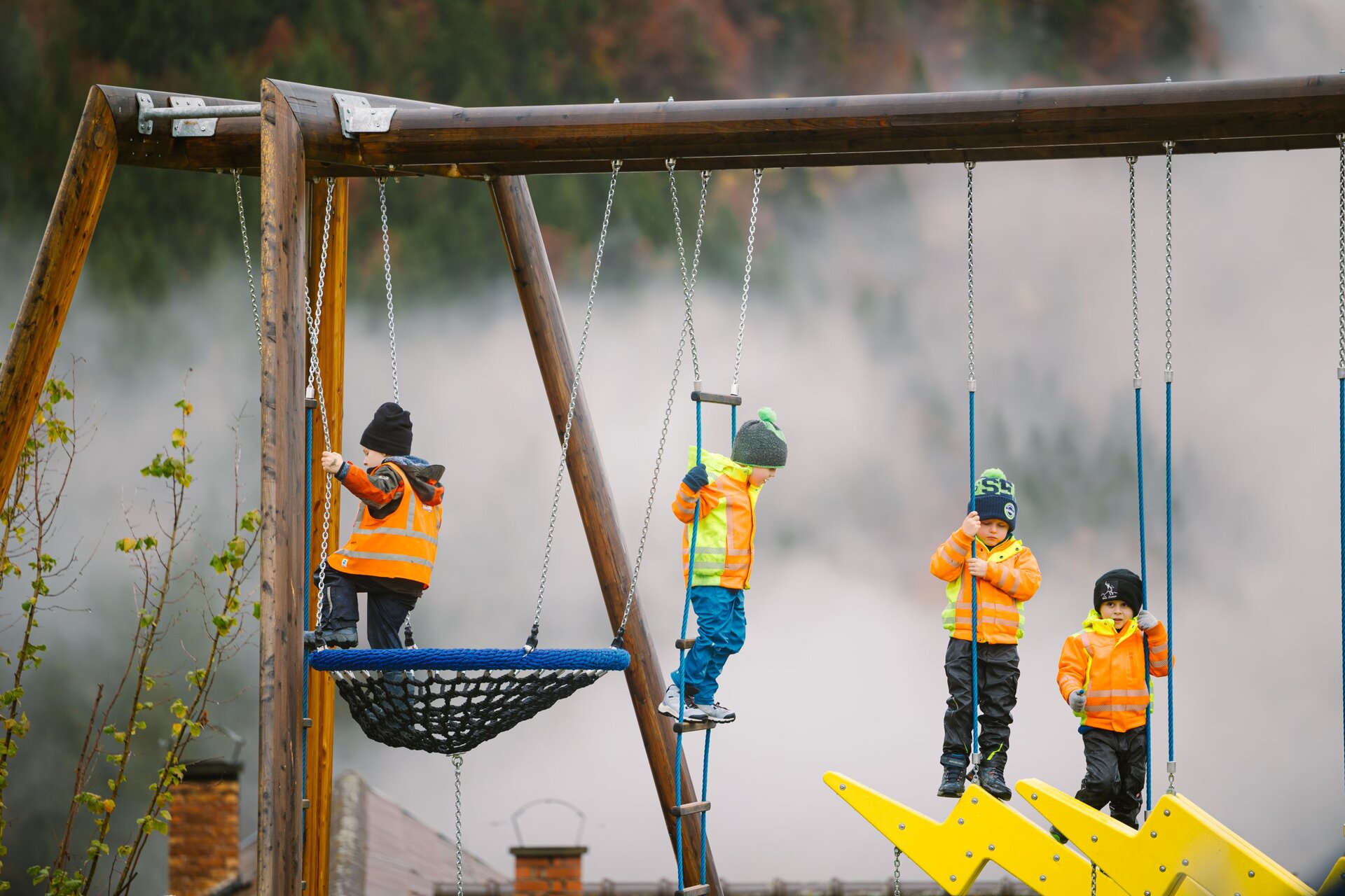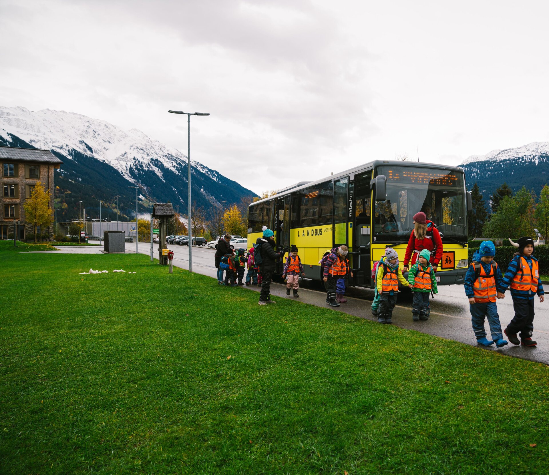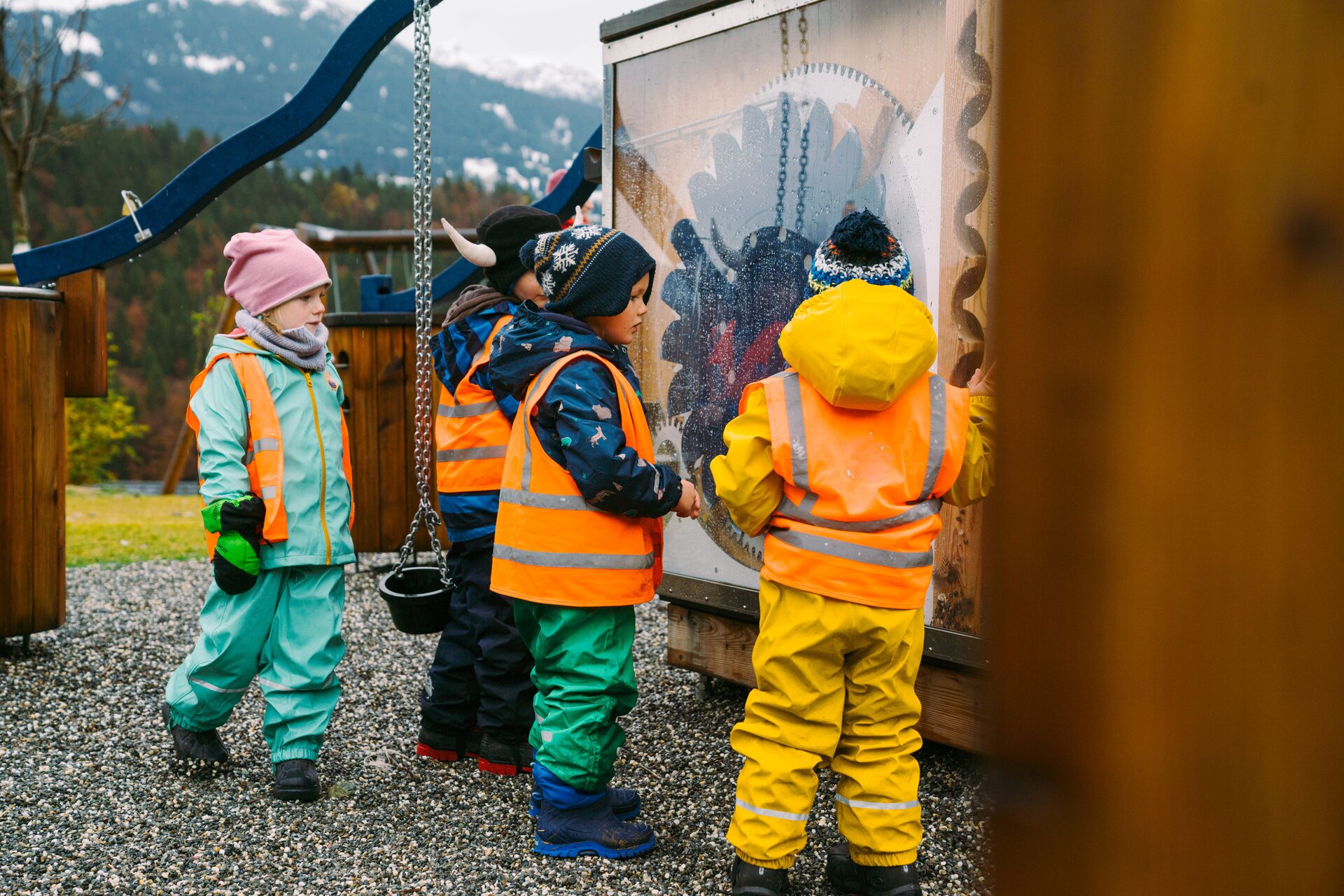 Regenwetter im Montafon? Kein Problem für die abenteuerlustigen Kinder des Kindergartens Bartholomäberg. Trotz grauer Wolken und Nieselregen machten sich unsere kleinen Entdecker der beiden Gruppen „Hennatschätter“ und „Steböck“, ausgerüstet mit Regenjacken und -stiefeln, auf den Weg zum Spielplatz in Latschau. Dieser wurde vom Hotel Falkensteiner erbaut. Dank des MBS Busses wurde die Fahrt durch die malerische Landschaft bergab und bergauf zu einem eigenen Erlebnis.