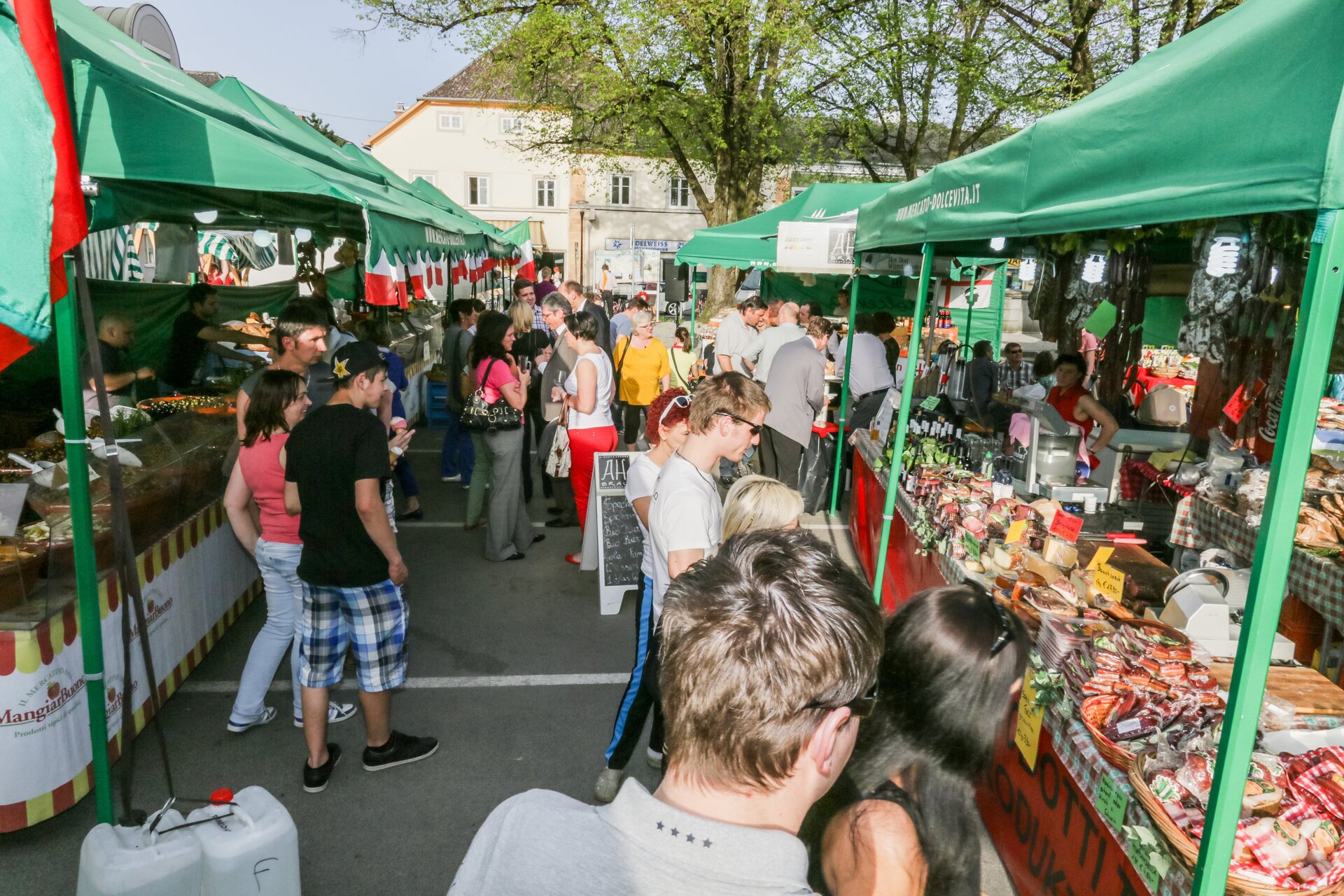 Die Fußgängerzone mit dem Kirchplatz ist für die Schrunser noch heute der zentrale Ort der Begegnung und des Austausches. Hier finden regelmäßig Märkte wie der Italienische Markt (Mercato & Fiesta Italia), der Sommermarkt, aber auch der beliebte Silbriga Sonntig Markt statt, die jedes Jahr unzählige Besucher aus Nah und Fern nach Schruns locken.