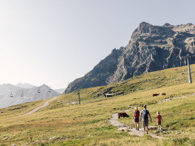 The cable car takes you from Gargellen (1,423 m) to the mountain station and the Schafberg Hüsli mountain restaurant in around 8 minutes. The tour starts here and you follow the "PAUL" signposts
