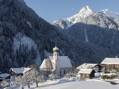 The chapel has existed since 1307 and was rebuilt in 1474. The Gothic polygonal choir, whose architectural design still exists today, belongs to that time. The Gothic choir vaulting was converted to the Baroque style. The church, with its 3 Rococo altars, the pulpit and the organ case, is amongst the most beautiful Rococo churches in Vorarlberg. Also of importance is the fresco cycle by W. Klausner (1775).