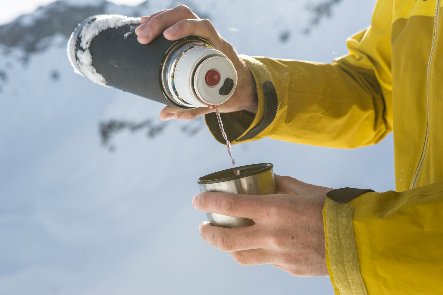 Ski tours are endurance sports. Before the ski touring season, train basic fitness in other endurance sports. The valuable stress stimuli for heart and circulation require good health and self-assessment. Avoid time pressure and increase the intensity and range of your tours slowly. Make sure you have energy reserves for the descent. Fluids, energy, and breaks are necessary to maintain performance and concentration. Hot, isotonic drinks are ideal thirst quenchers and sources of warmth. Muesli bars, dried fruit, and biscuits satisfy small hunger on the way.
