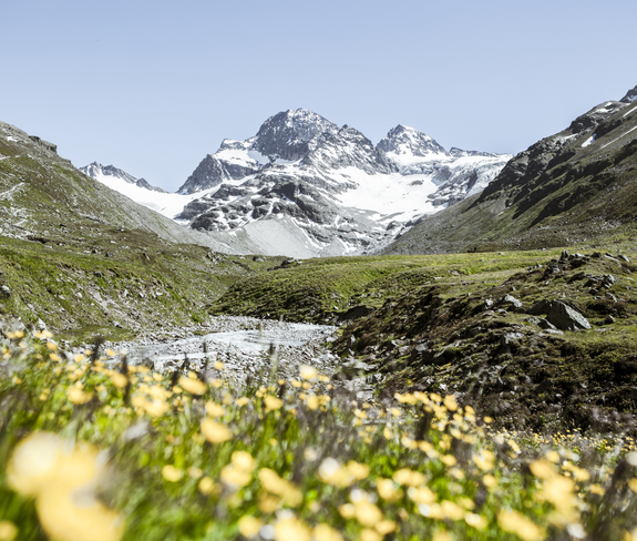 From the Madlenerhaus, you hike up to the Silvretta Lake. The hike starts at the Silvretta Lake and leads left over the dam to the junction into the Bieltal. The lively Bieltalbach takes on the first elevation meters. As a larger lake, the Radsee lies to the right of the path on a height, embedded in green meadows. Now you have to cross rock and scree fields. Higher up the path becomes wetter as smaller lakes are located in the terrain. The Radsattel is reached. The view is magnificent. Grey-green and rust-red rugged rock ridges rise from green mats. Behind them shine the white firn fields and impressive glaciers. The descent to the Wiesbadener Hut starts a bit steeply and then zig-zags downhill.