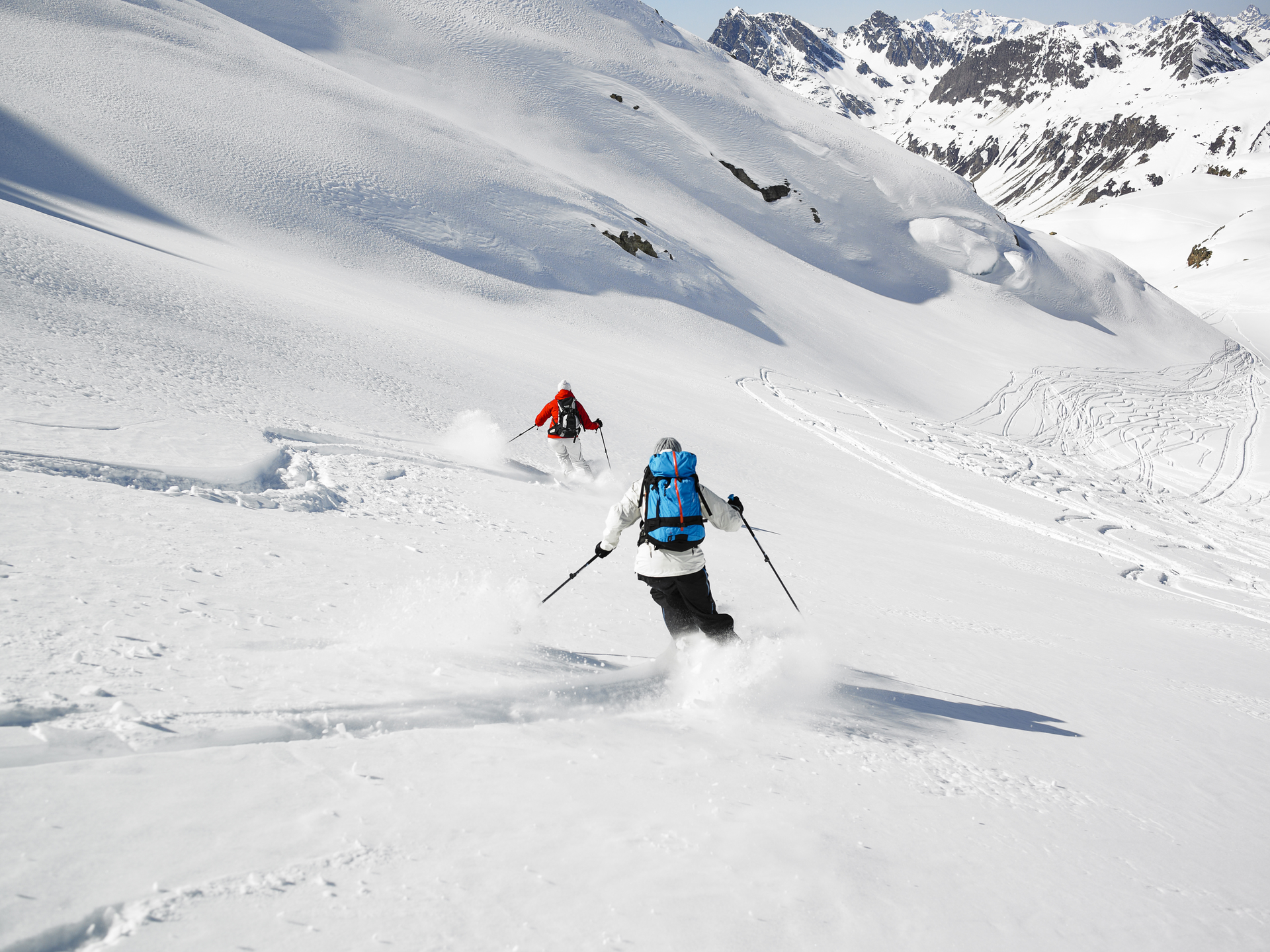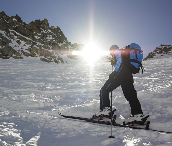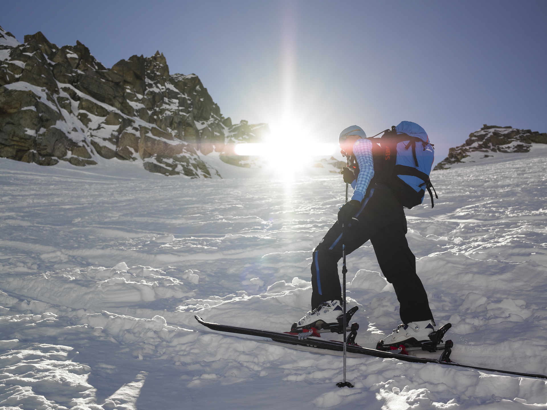 Ski touring equipment, skins, if necessary crampons, ski poles, ski helmet, avalanche equipment with transceiver, avalanche probe, and shovel, ski touring backpack (approx. 30 liters) with avalanche airbag and rain cover, ski touring boots, ski socks, warm and durable clothing in layers, ski touring jacket and pants, light gloves for ascent, warm gloves for descent, hat/headband, if necessary ski goggles, sun and rain protection, provisions and drinking water, thermos flask with hot drink, first aid kit, pocket knife, mobile phone, headlamp and reflectors, map material, bivy sack and rescue blanket
