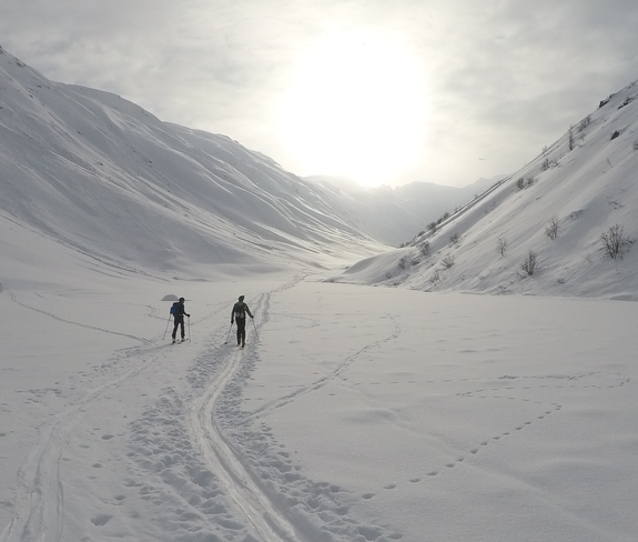 Ski touring skis, skins, possibly crampons, ski poles, ski helmet, avalanche equipment with transceiver, probe and shovel, ski touring backpack (approx. 30 liters) with avalanche airbag and rain cover, ski touring boots, ski socks, warm and durable clothing in layers, ski touring jacket and pants, light gloves for ascent, warm gloves for descent, hat/headband, possibly ski goggles, sun and rain protection, provisions and drinking water, thermos with hot drink, first aid kit, pocket knife, mobile phone, headlamp and reflectors, map material, bivy bag and emergency blanket