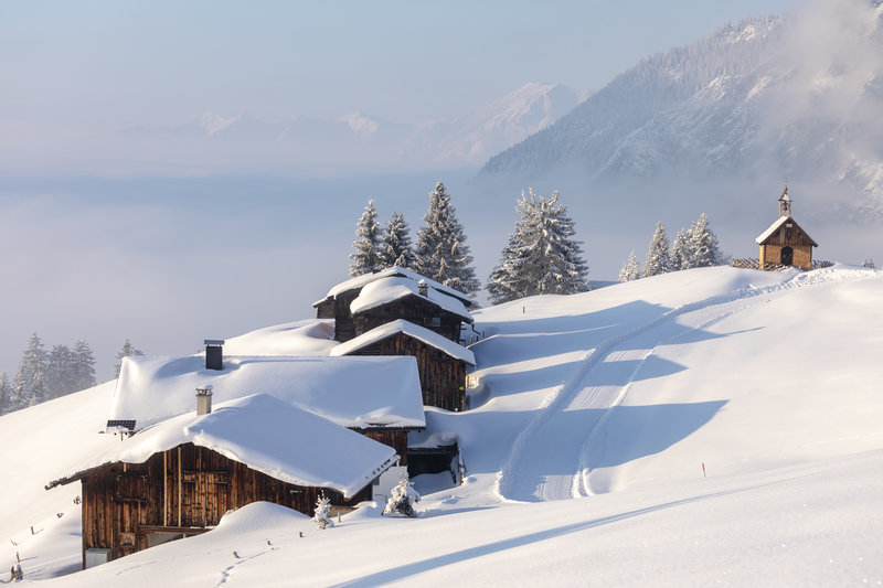 The starting point of this winter hike is the imposing church in Bartholomäberg.