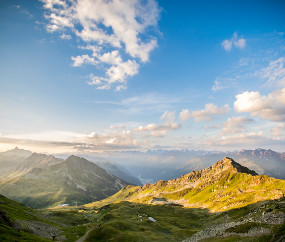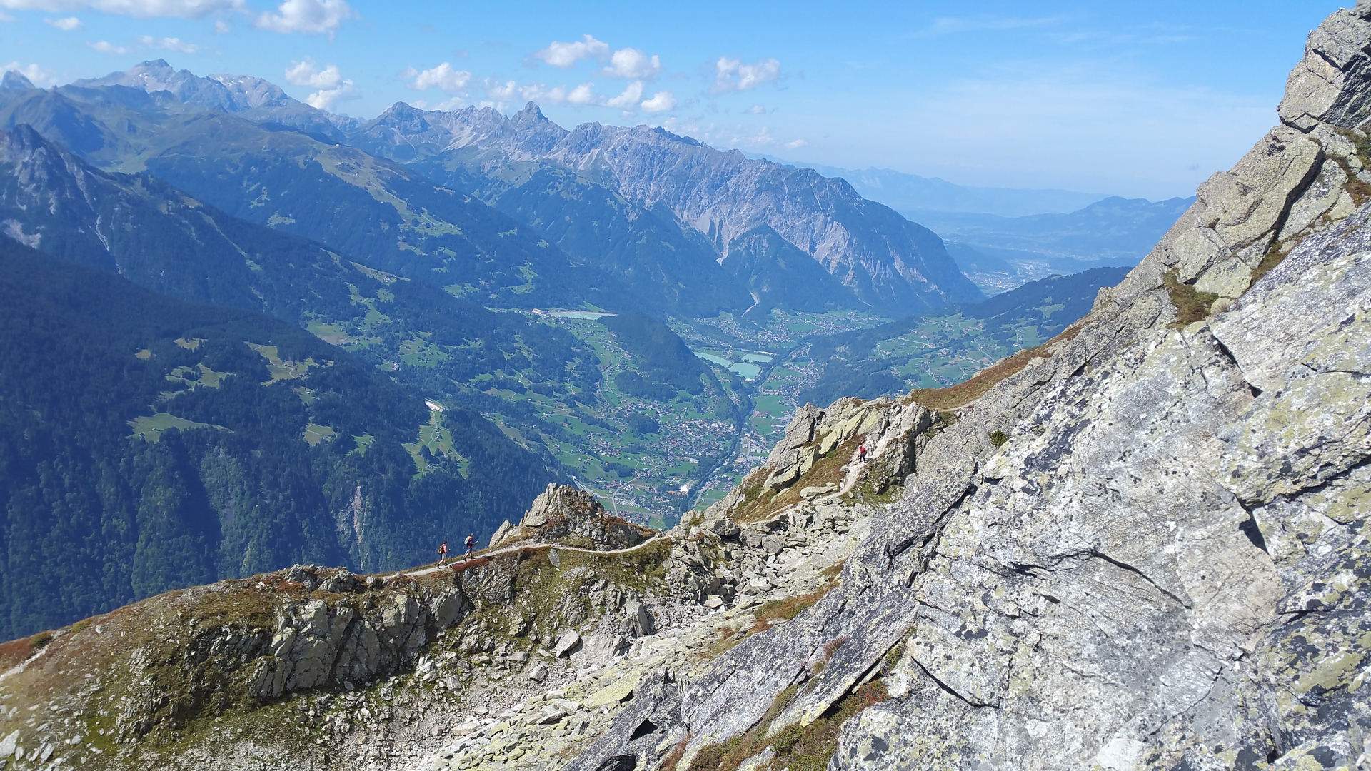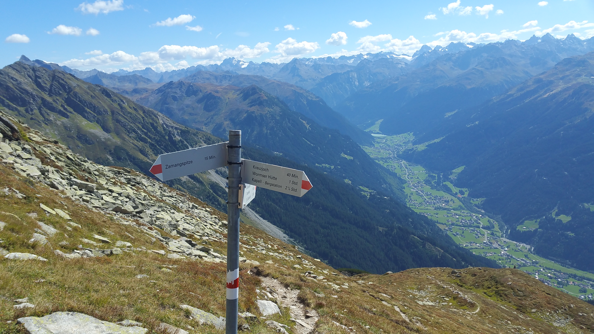 From the mountain station of the Hochalpila Bahn, you head towards Kreuzjoch. Here the path is still very wide and you see many beautiful viewpoints on the left side for a great photo. Eventually, you see the mountain station of the Panorama Bahn. Right behind it, the path leads you to Kreuzjoch. Once at the top, you can almost overlook the entire Montafon. And you can already see your next destination, the Zamangspitze. The path now goes back down from Kreuzjoch along the same route and over a beautiful panoramic path towards Zamangspitze. Eventually, you reach a junction where the path leads directly over an alpine trail to Zamangspitze. This trail is very exposed and only partially secured with a wire rope. Alpine experience, surefootedness, and a head for heights are an absolute must for this alpine trail. Therefore, I recommend you take the path to the right and walk around under the summit, taking the easier path on the other side of the summit. Once at the top, the Zamangspitze invites you to linger. Then back down the way. Now you always follow the path towards Zamangalpe. Once you arrive at Zamangalpe, you continue on the alpine path back to the Grasjoch Bahn.