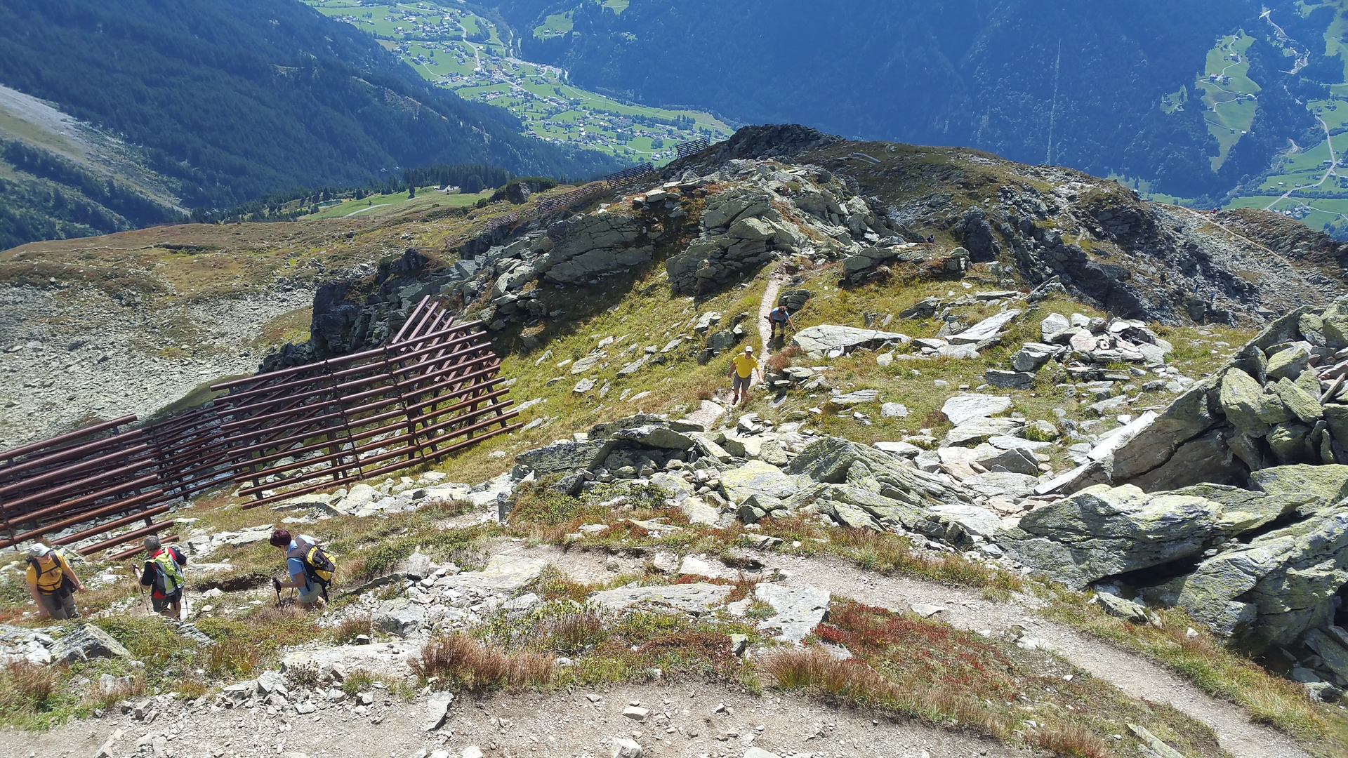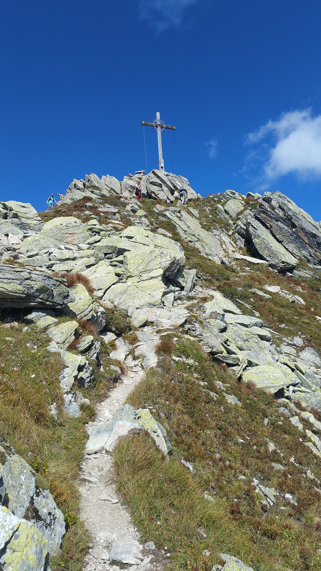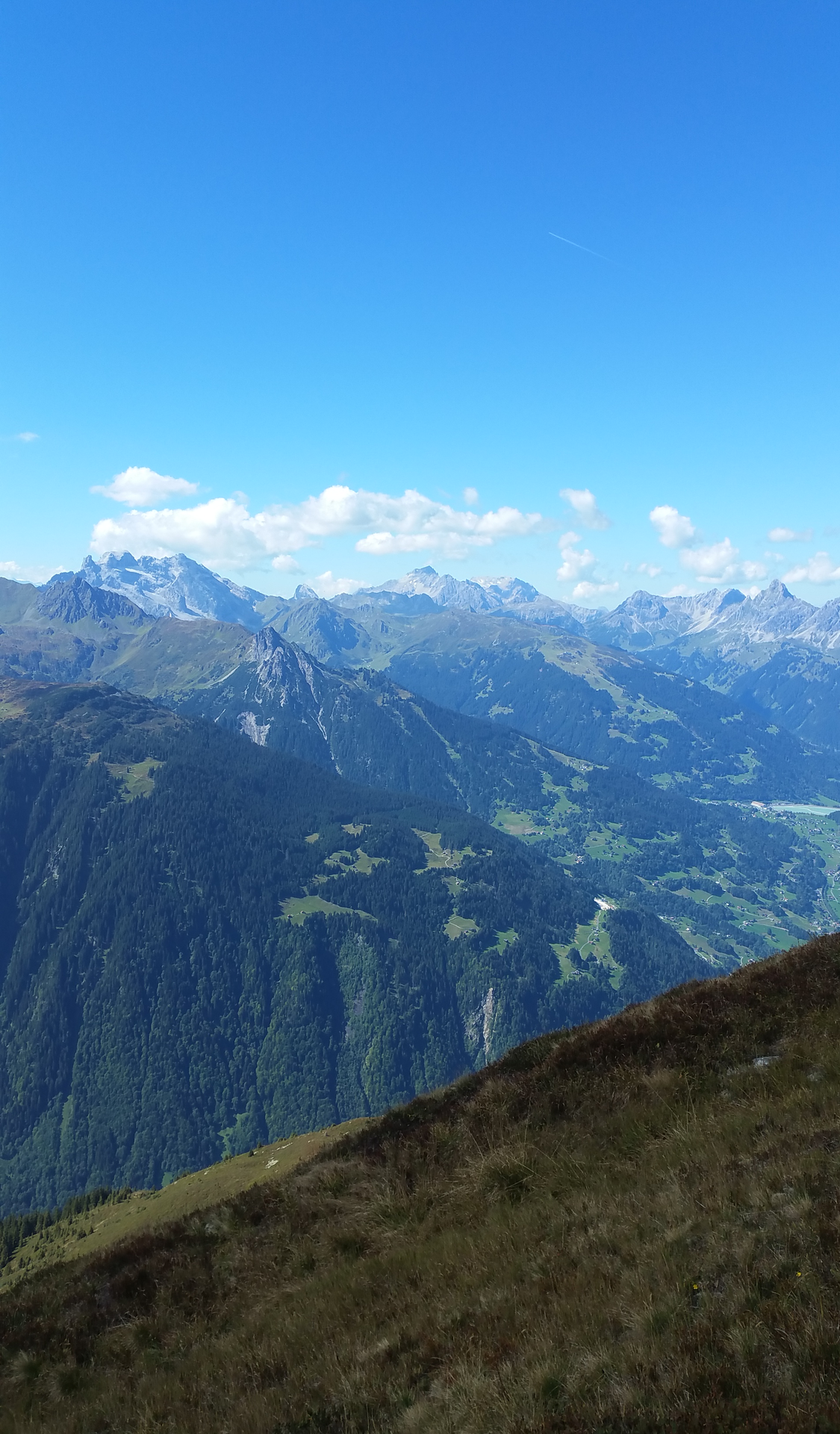 From the mountain station of the Hochalpila Bahn, you head towards Kreuzjoch. Here the path is still very wide and you see many beautiful viewpoints on the left side for a great photo. Eventually, you see the mountain station of the Panorama Bahn. Right behind it, the path leads you to Kreuzjoch. Once at the top, you can almost overlook the entire Montafon. And you can already see your next destination, the Zamangspitze. The path now goes back down from Kreuzjoch along the same route and over a beautiful panoramic path towards Zamangspitze. Eventually, you reach a junction where the path leads directly over an alpine trail to Zamangspitze. This trail is very exposed and only partially secured with a wire rope. Alpine experience, surefootedness, and a head for heights are an absolute must for this alpine trail. Therefore, I recommend you take the path to the right and walk around under the summit, taking the easier path on the other side of the summit. Once at the top, the Zamangspitze invites you to linger. Then back down the way. Now you always follow the path towards Zamangalpe. Once you arrive at Zamangalpe, you continue on the alpine path back to the Grasjoch Bahn.