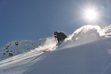 Es gibt neuestes Leihequipment von allen bekannten Skiherstellern, Vorträge zu unterschiedlichen Themen und geführte Touren bei Bedarf. Alles kostenlos. Wir bedienen uns am Leihequipment und starten mit neuesten Ski auf eine letzte Tour ins selbe Tal wie zur Rotbühelspitze und besteigen zwei weitere Scharten, bevor wir nach getaner Arbeit beim Apres Ski auf ein wundervolles Wochenende anstoßen, das viel besser hätte nicht sein können. Wir kommen mit Sicherheit bald wieder vorbei, denn es gibt noch reichlich weitere Touren zu entdecken.
