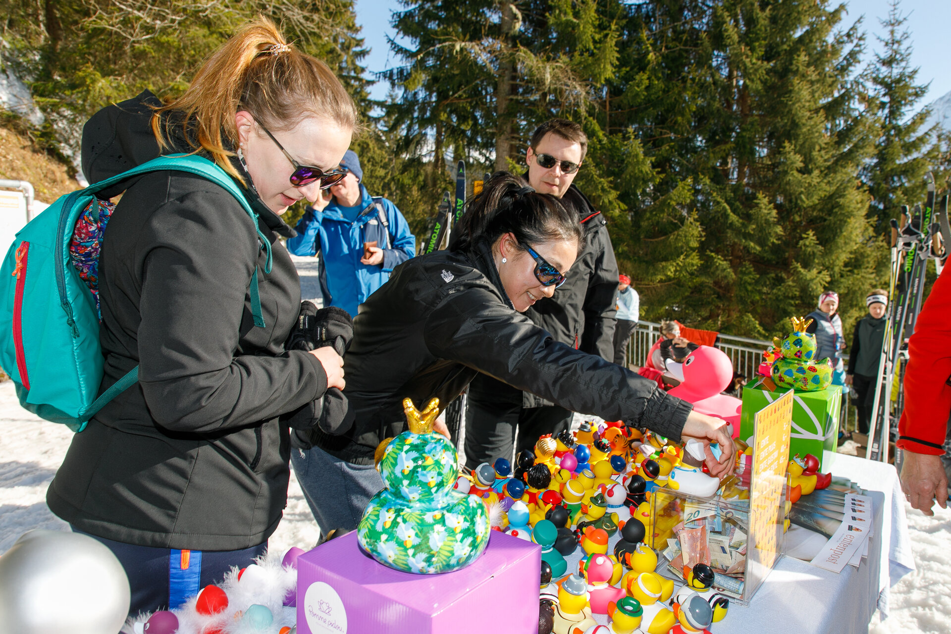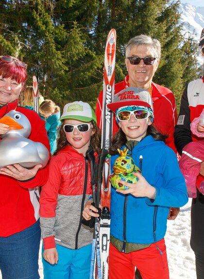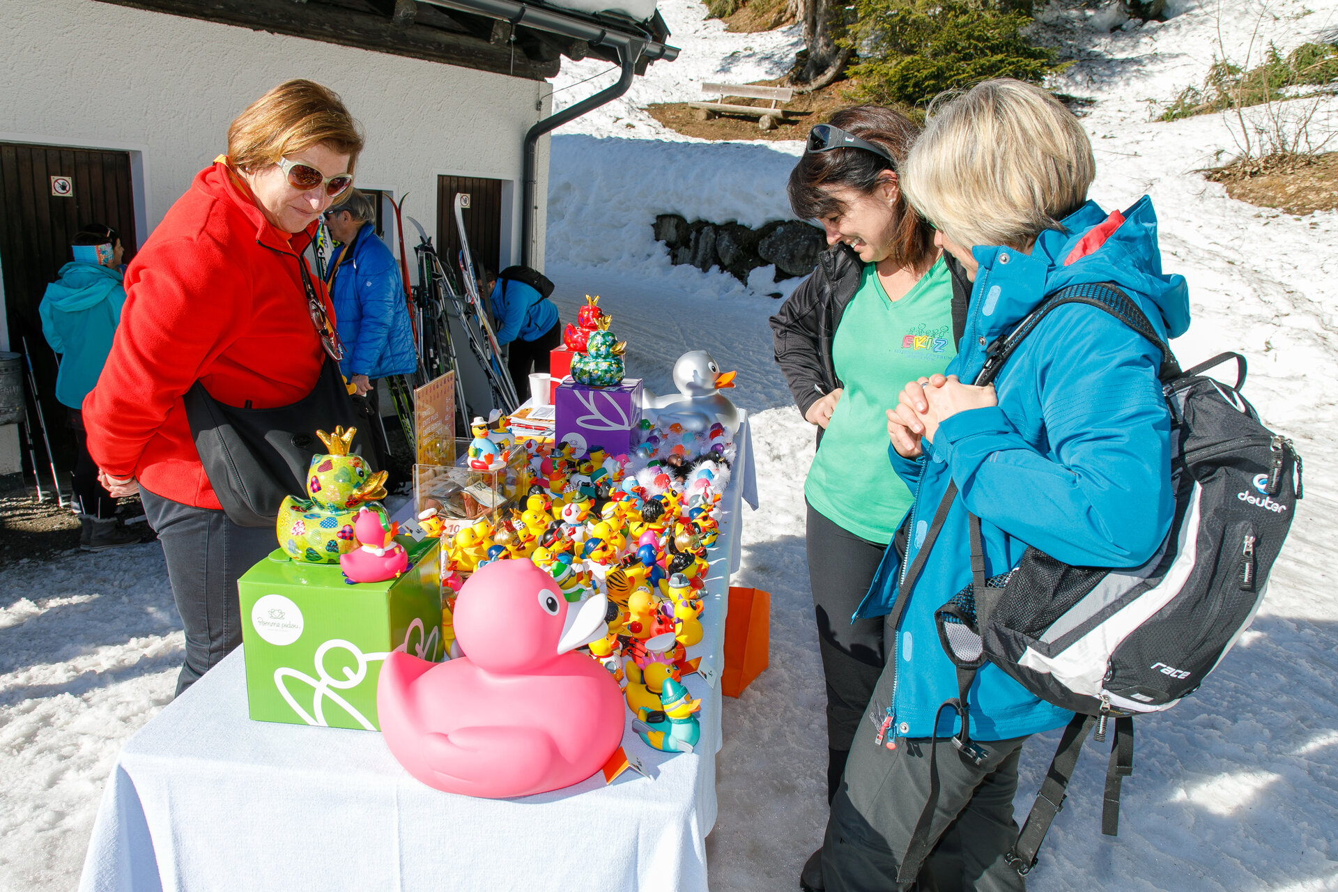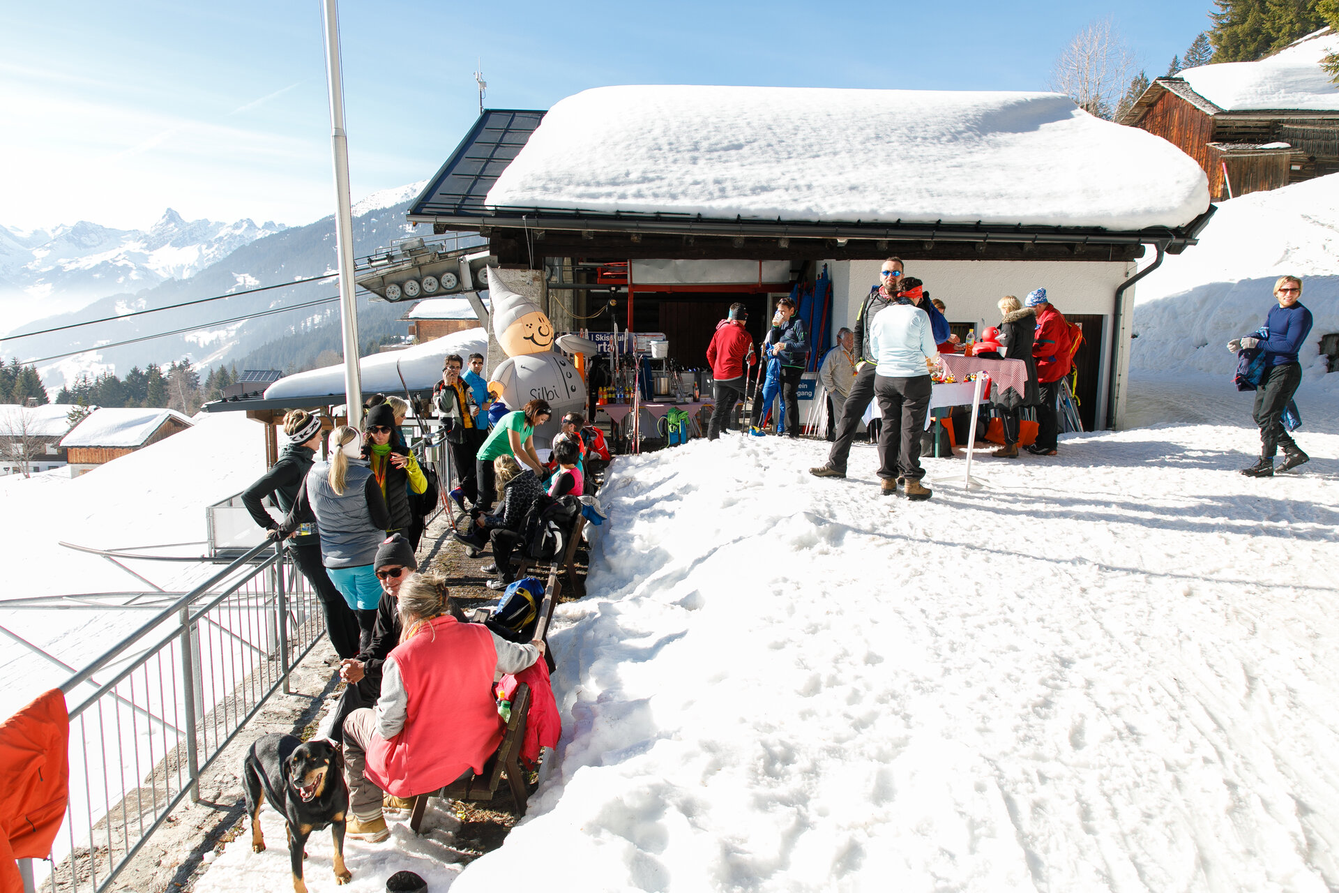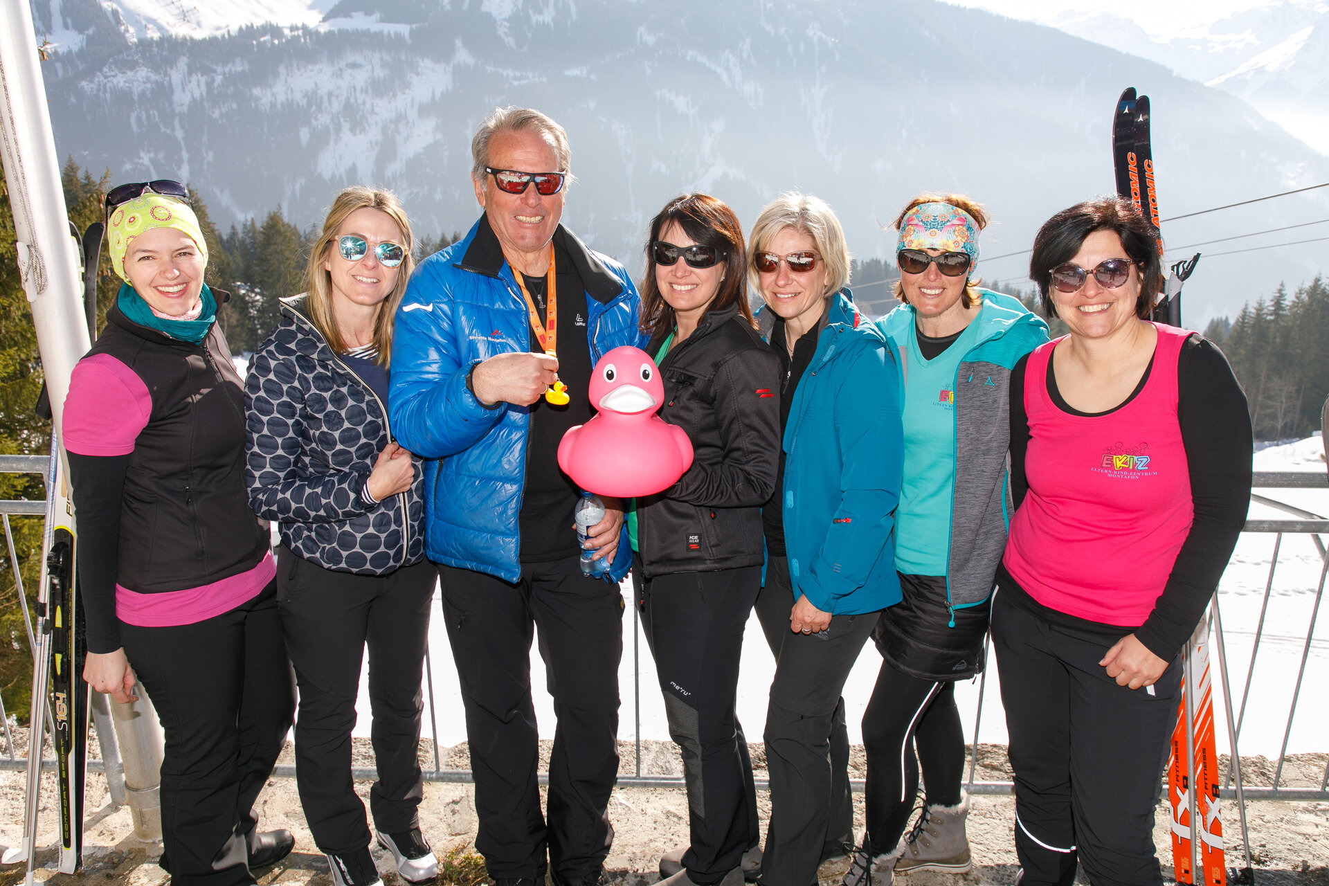 Bei der Bergstation der Montafoner Kristbergbahn war das Team vom „Netz für Kinder“ und Jürgen Zudrell stationiert. Hier gab es neben der "kostenfreien" Langlaufausrüstung auch verschiedene Tee´s, Säfte, Wasser und jede Menge bunte "Enten", das Symbol vom „Netz für Kinder“ (Ente gut alles gut :)).