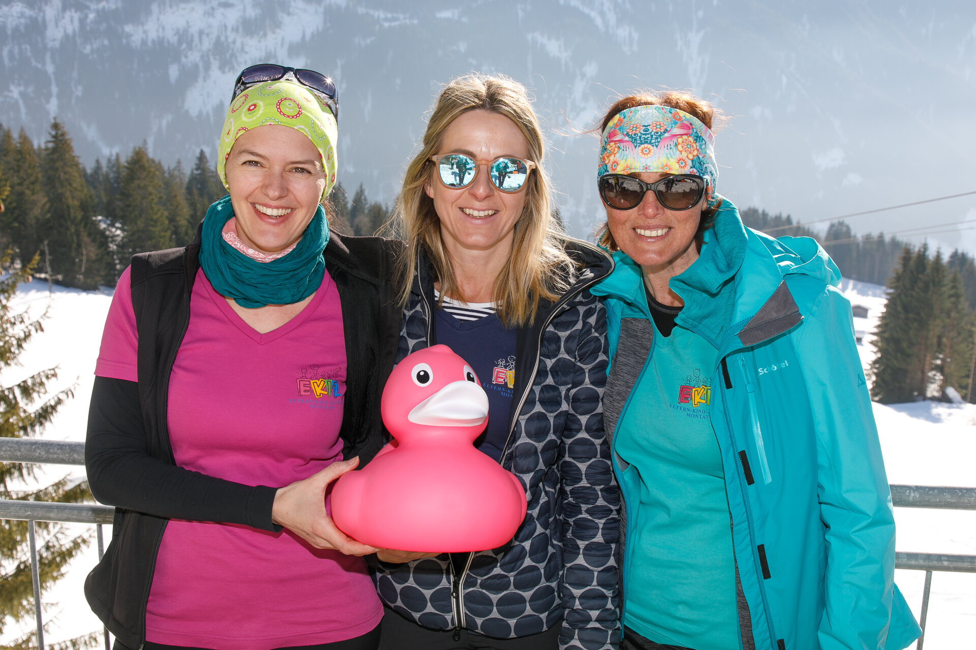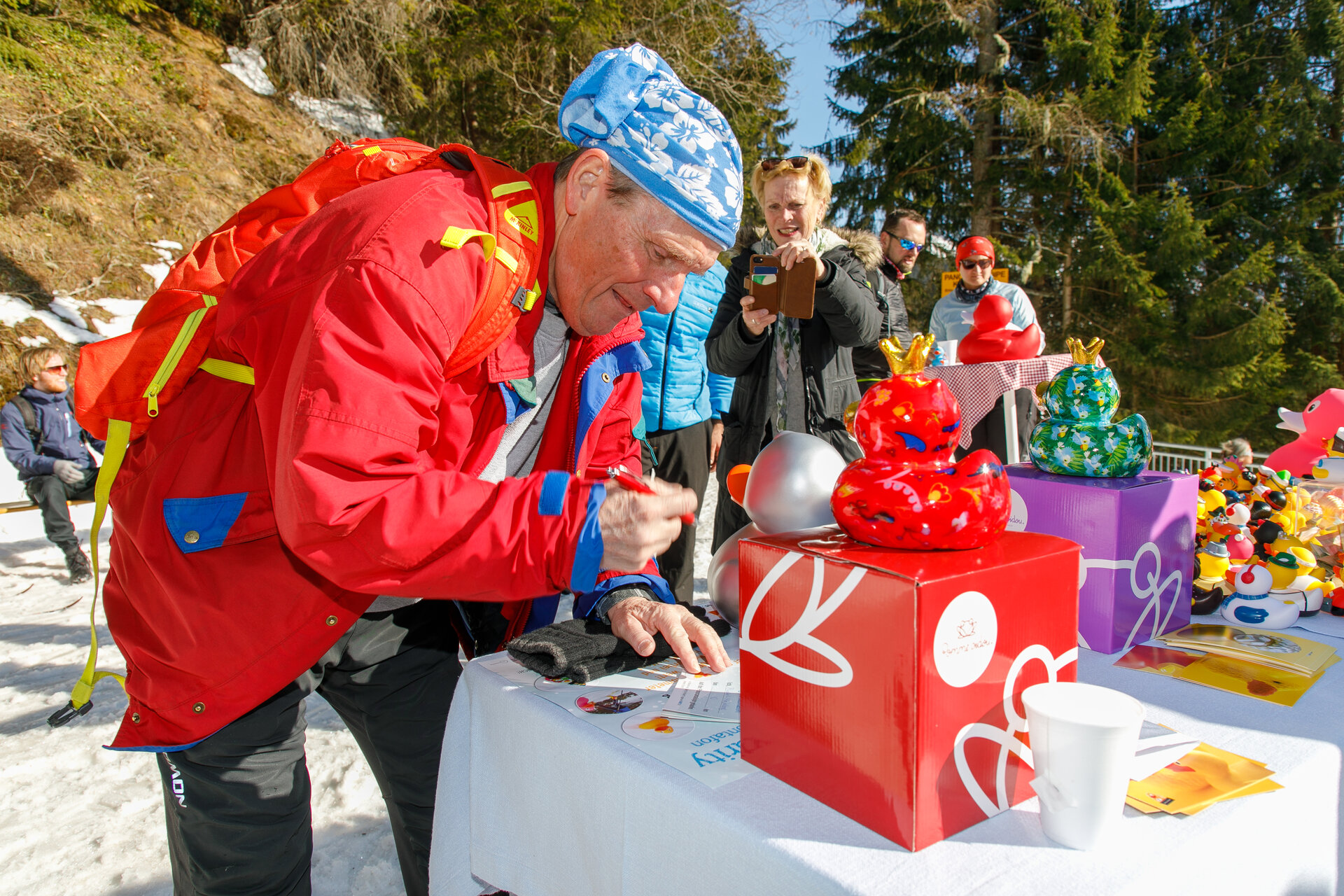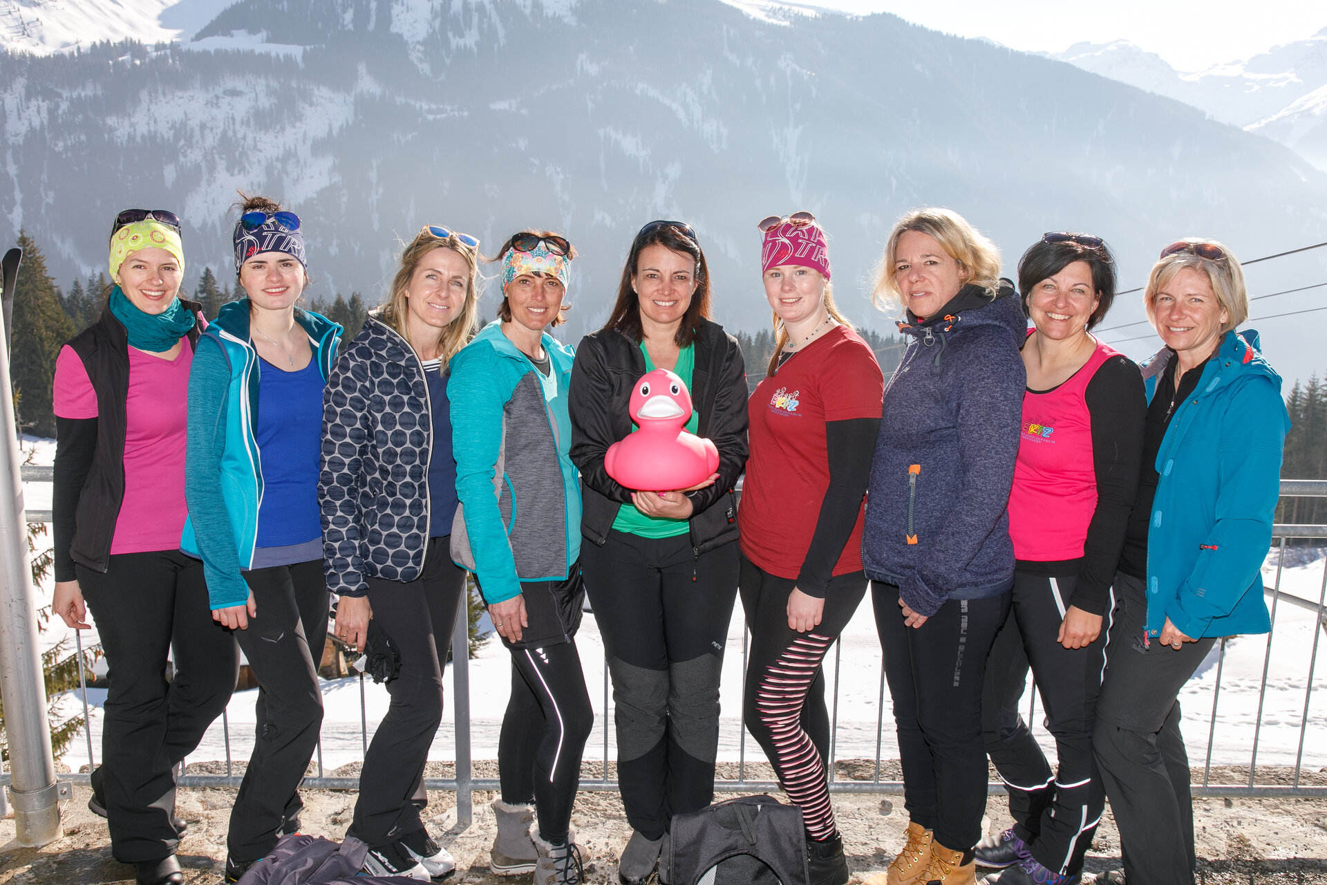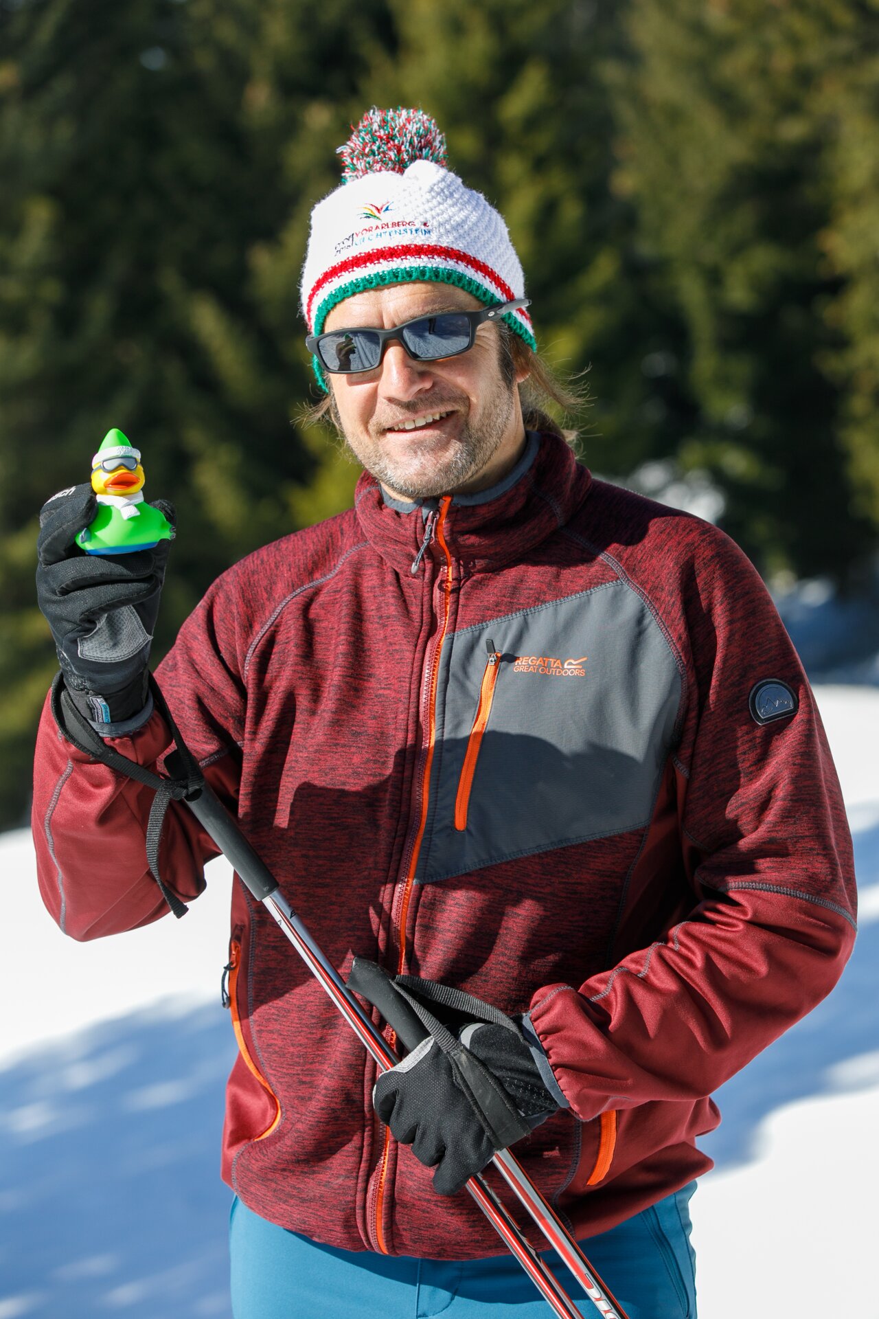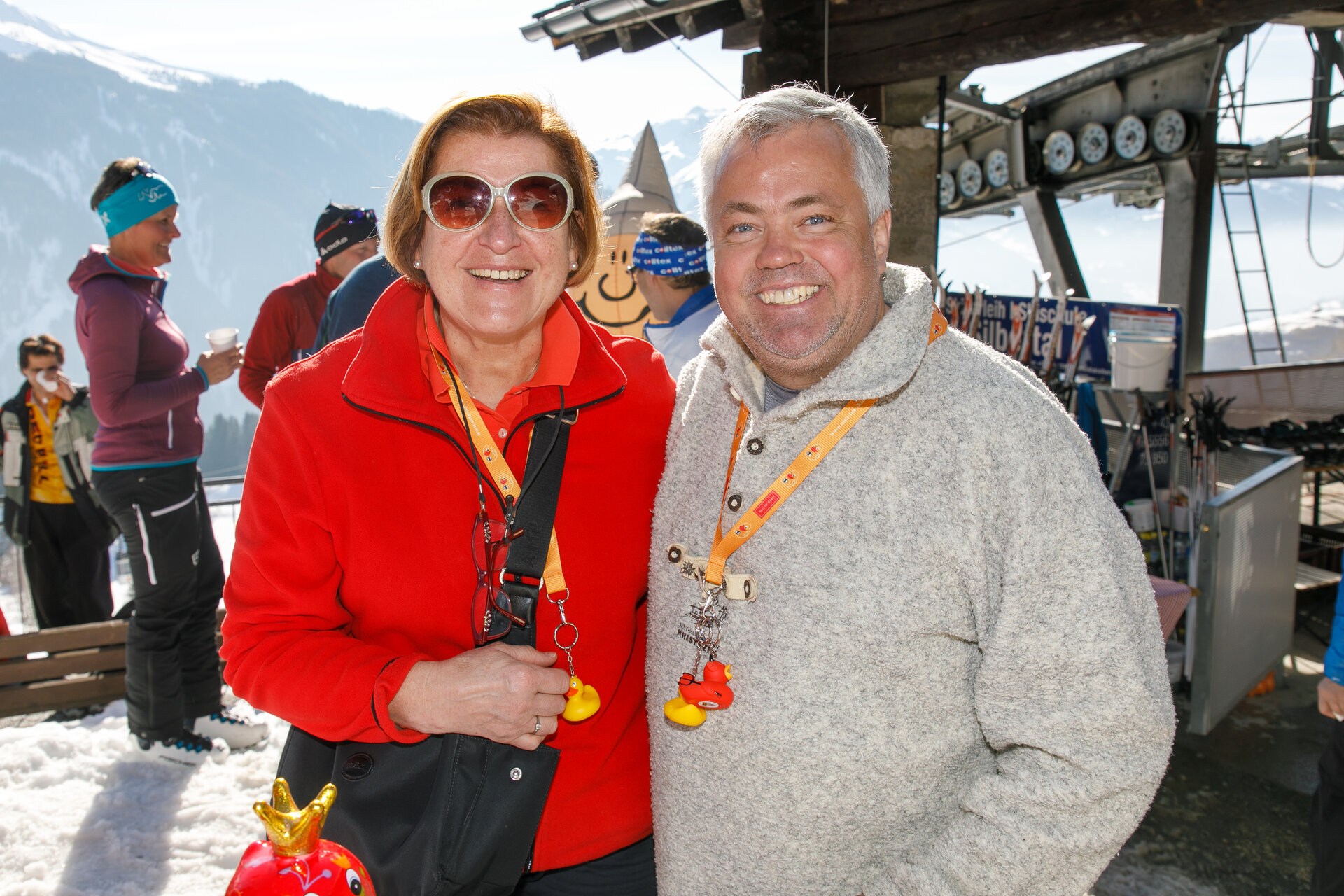 Bei der Bergstation der Montafoner Kristbergbahn war das Team vom „Netz für Kinder“ und Jürgen Zudrell stationiert. Hier gab es neben der "kostenfreien" Langlaufausrüstung auch verschiedene Tee´s, Säfte, Wasser und jede Menge bunte "Enten", das Symbol vom „Netz für Kinder“ (Ente gut alles gut :)).