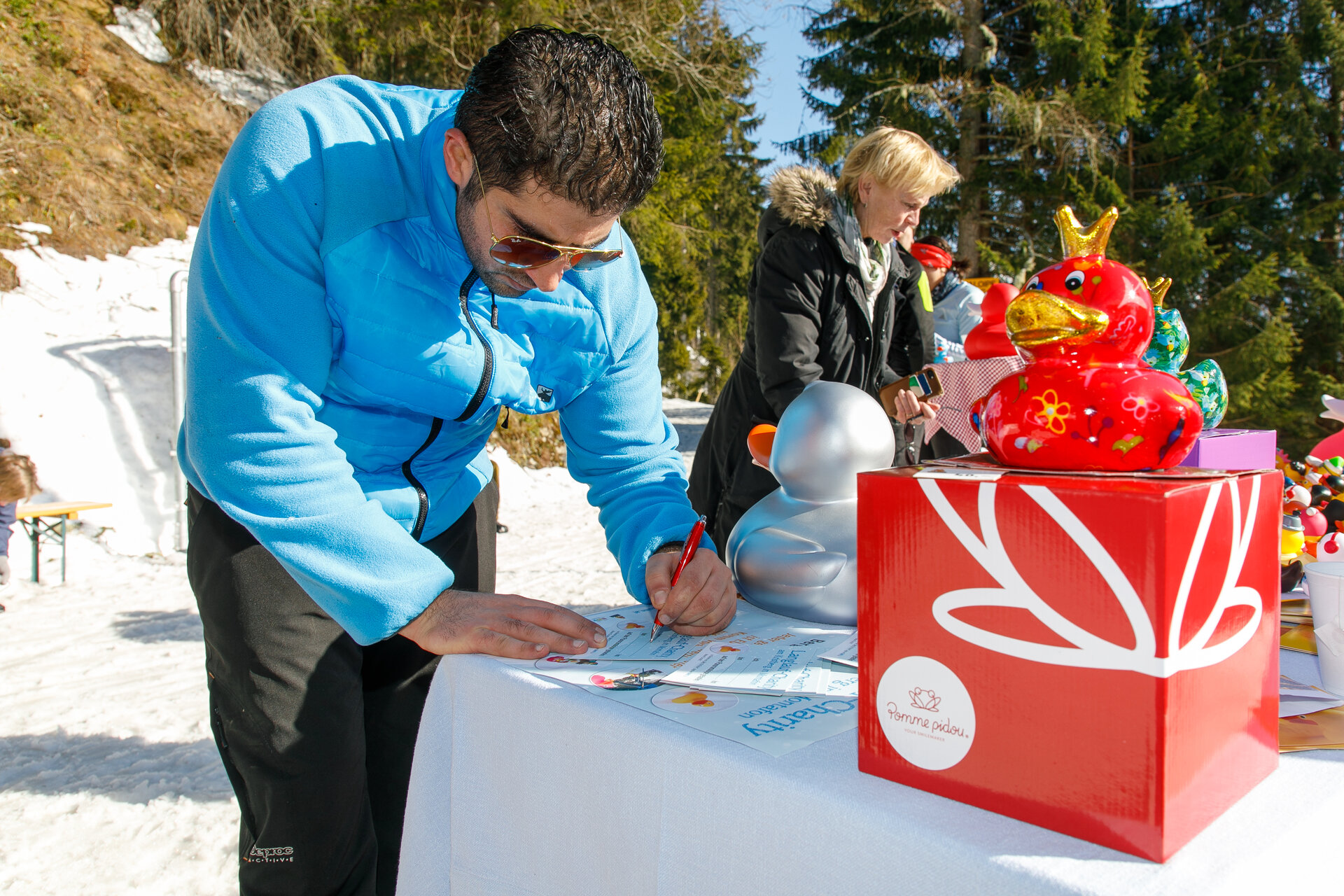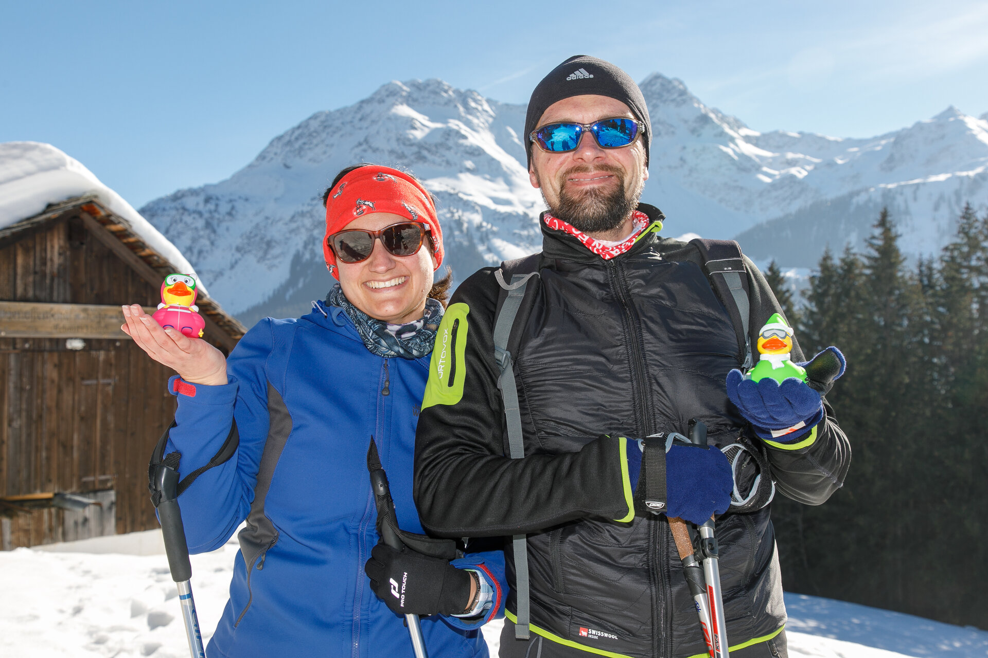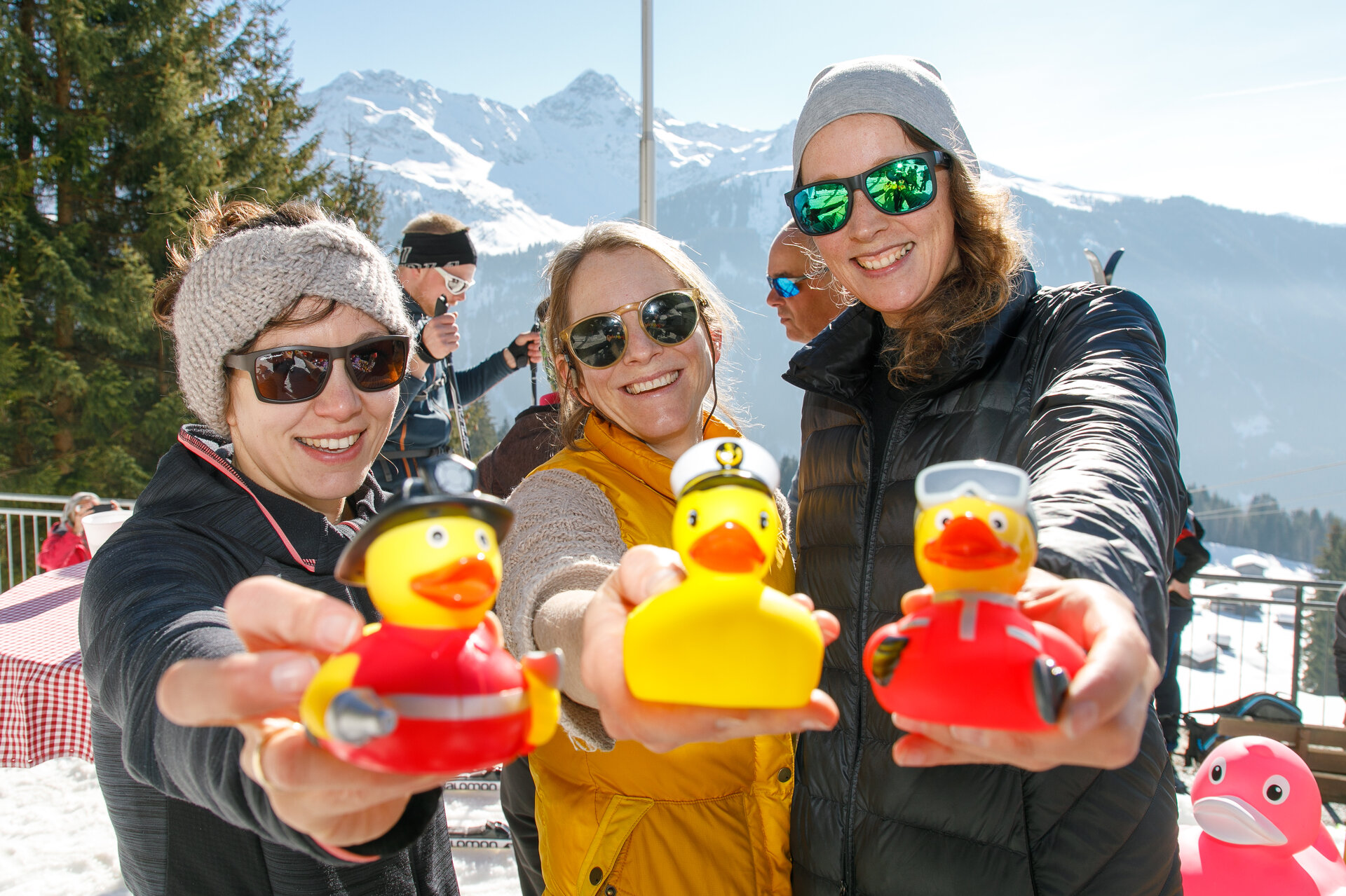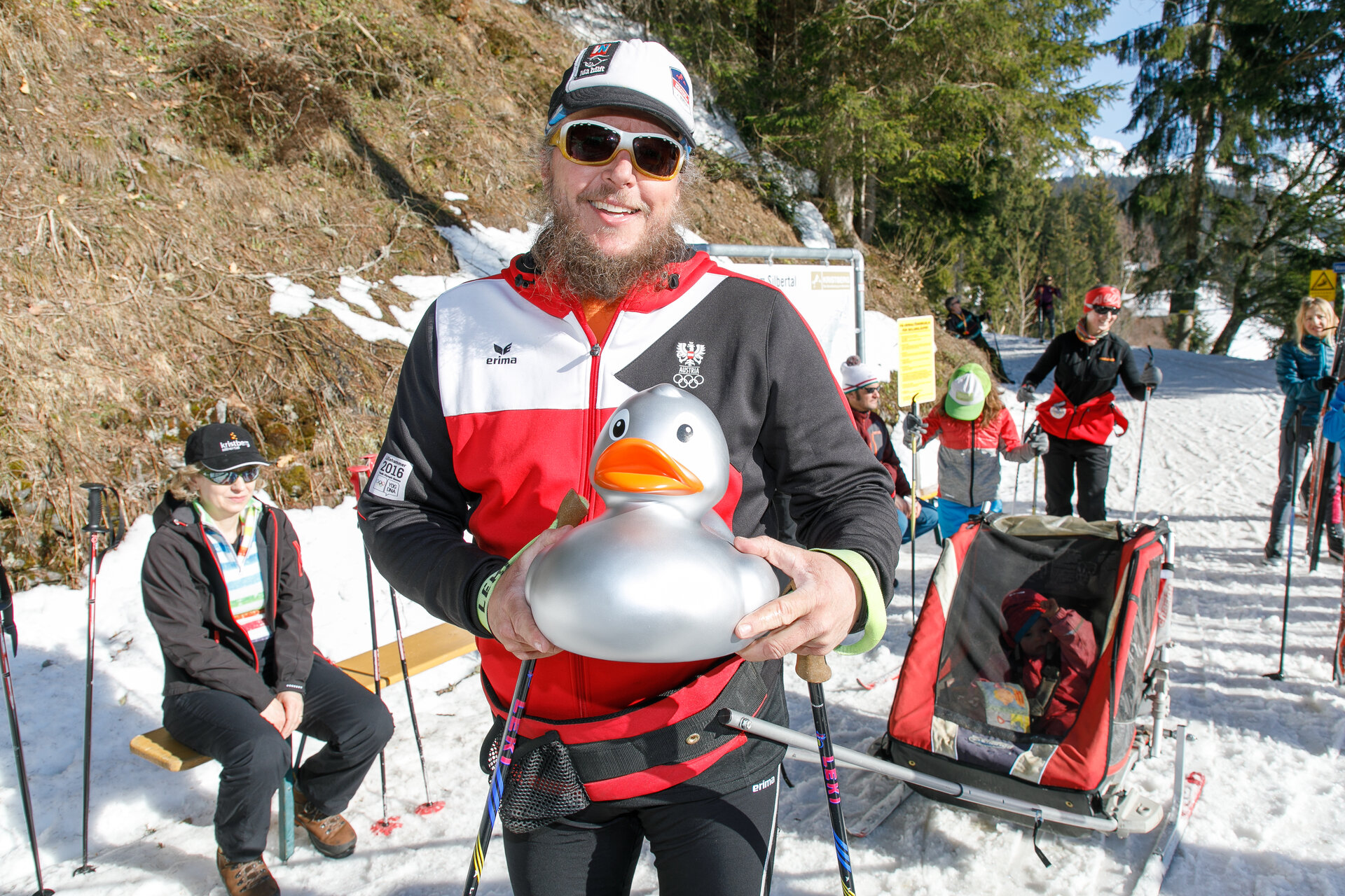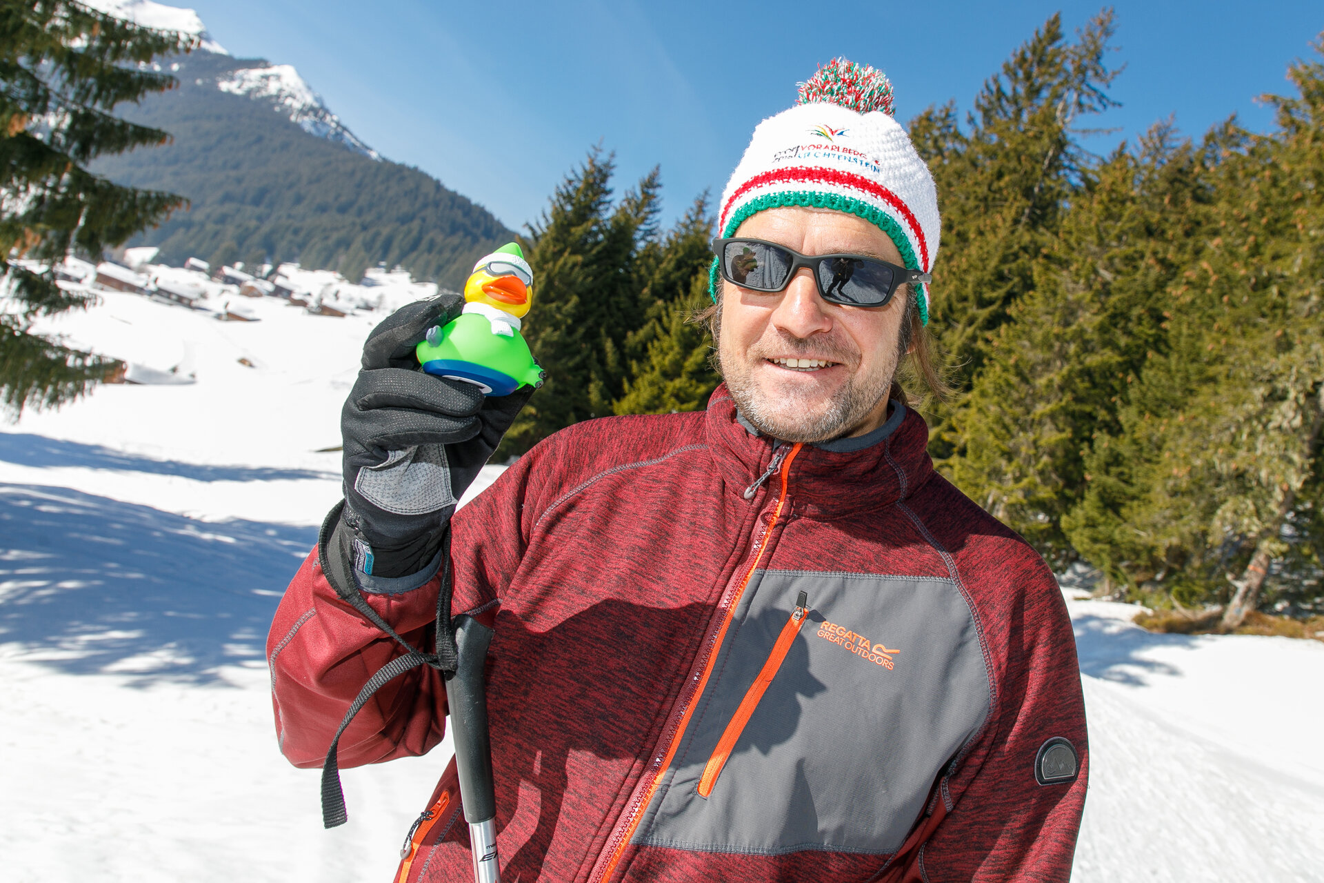 Bei der Bergstation der Montafoner Kristbergbahn war das Team vom „Netz für Kinder“ und Jürgen Zudrell stationiert. Hier gab es neben der "kostenfreien" Langlaufausrüstung auch verschiedene Tee´s, Säfte, Wasser und jede Menge bunte "Enten", das Symbol vom „Netz für Kinder“ (Ente gut alles gut :)).