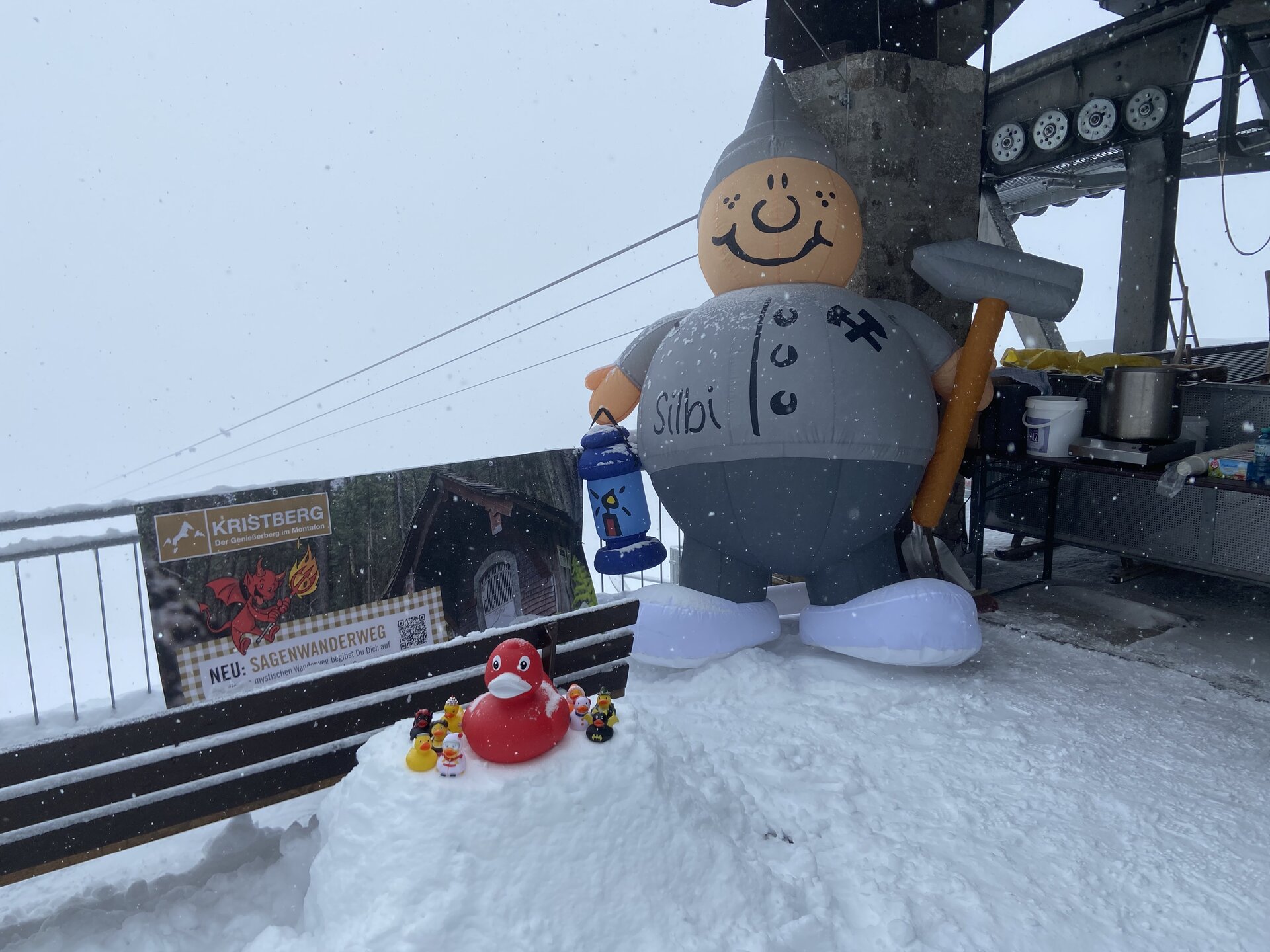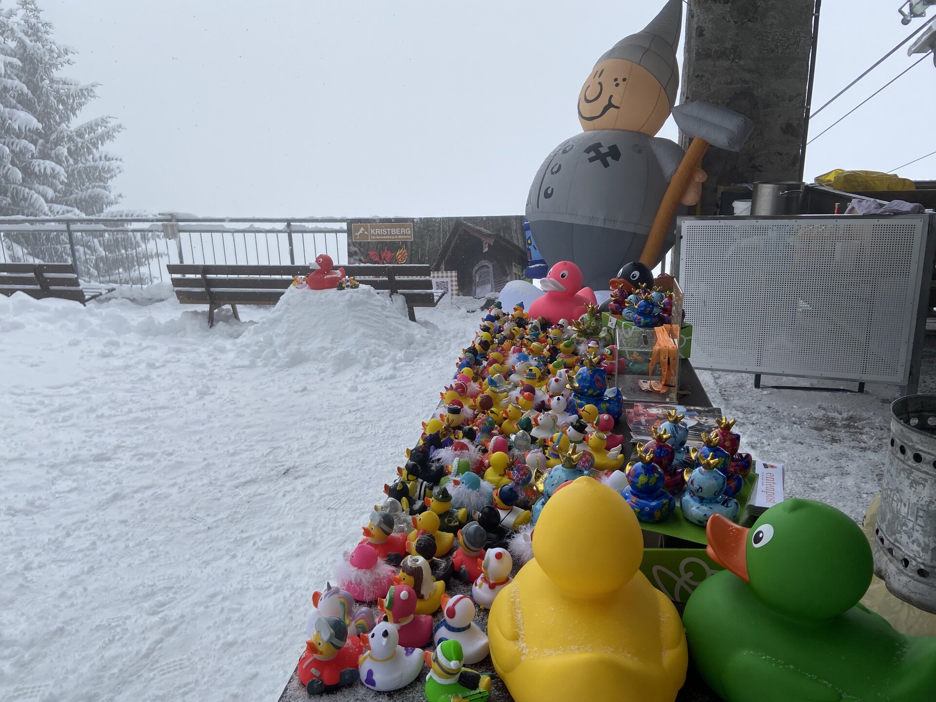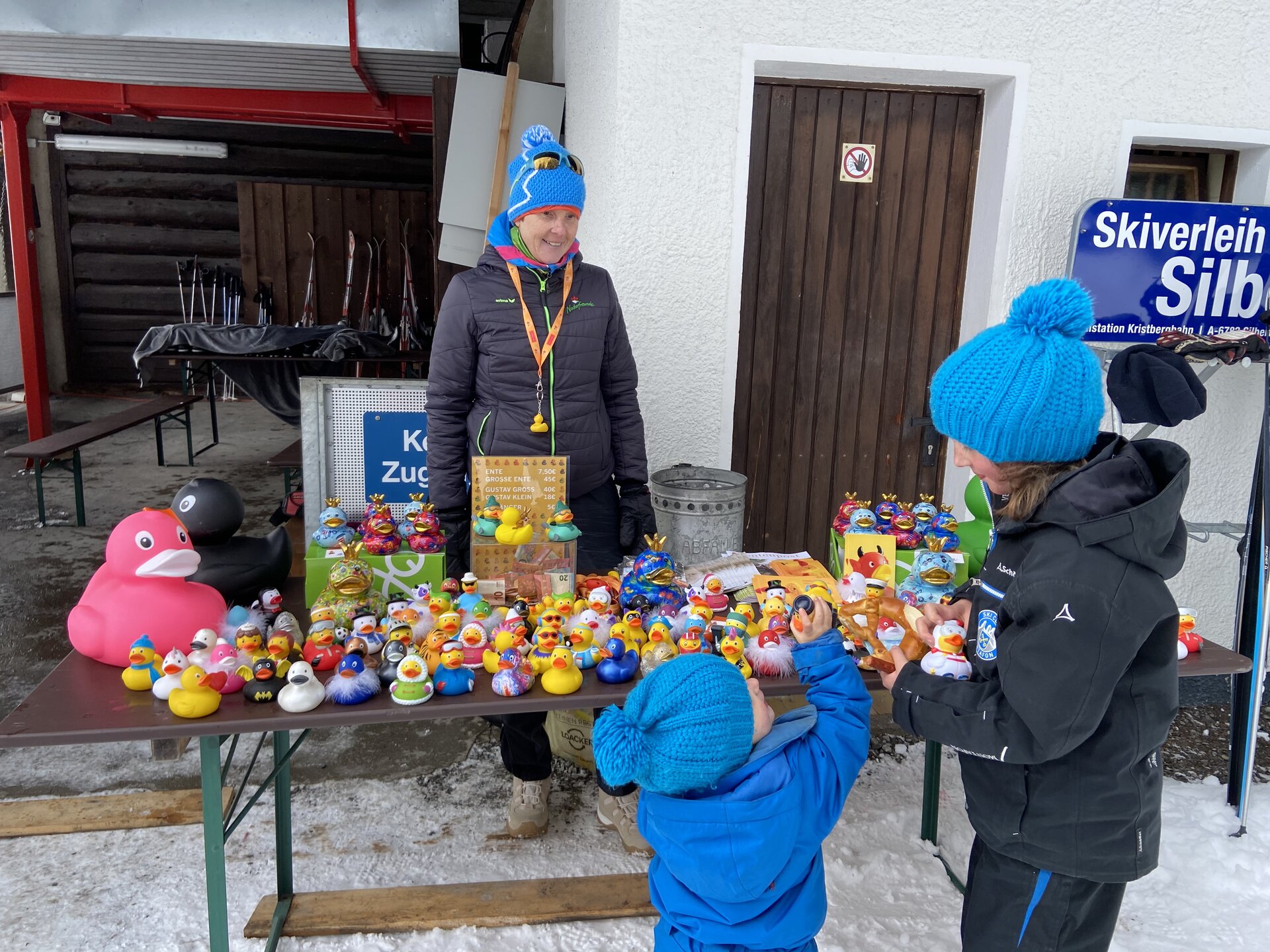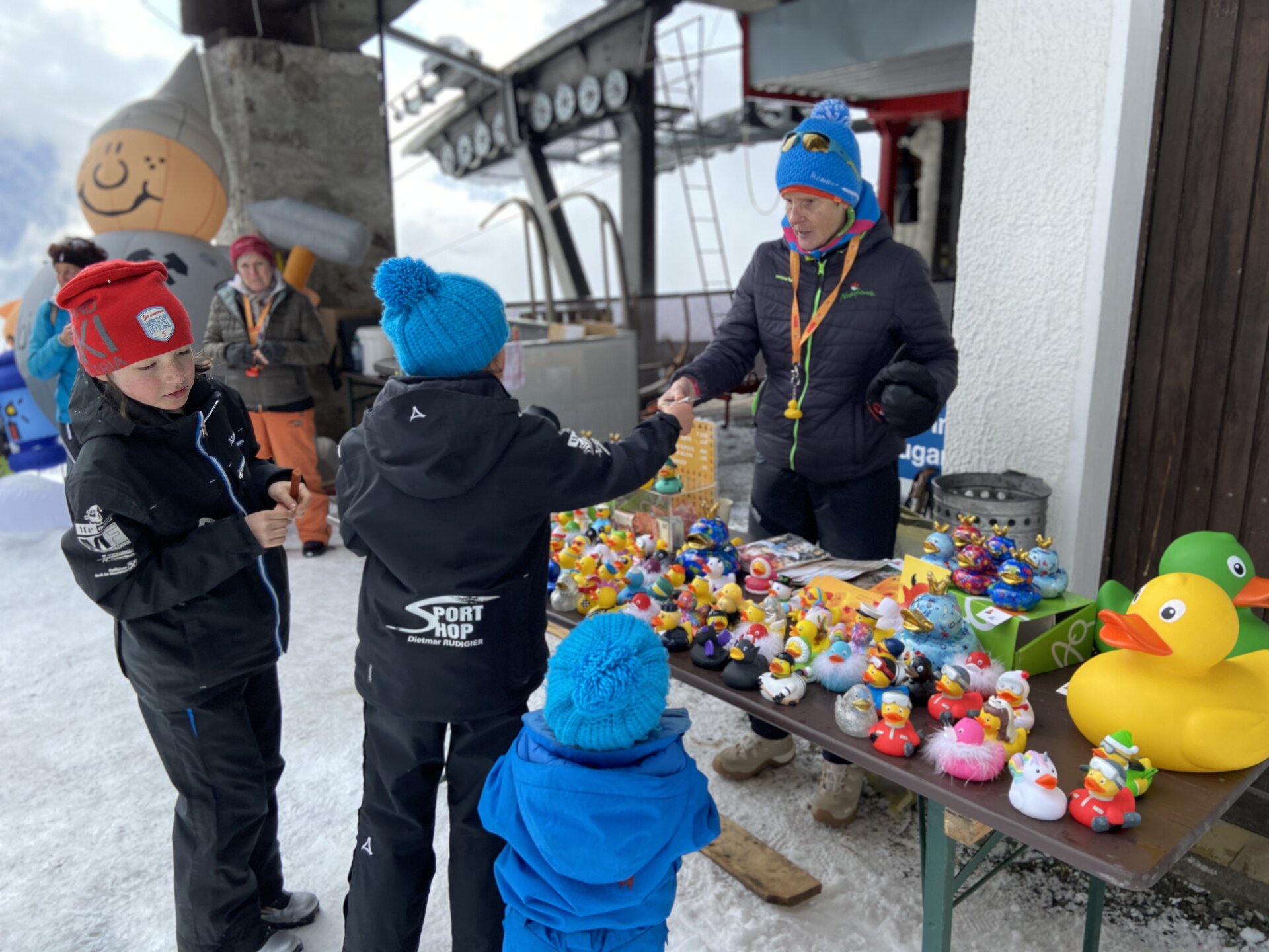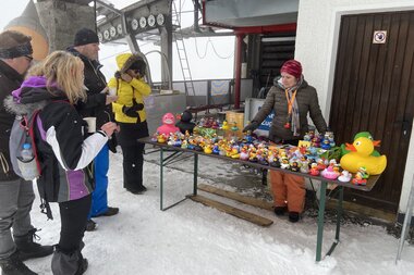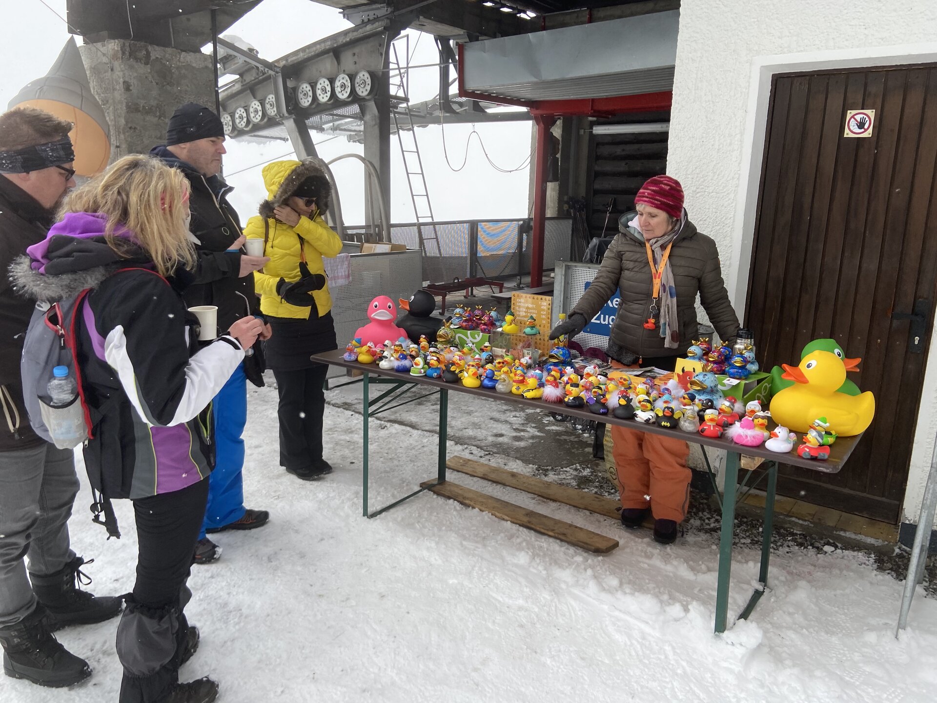 Bei der Bergstation der Montafoner Kristbergbahn war das Team vom „Netz für Kinder“ und Jürgen Zudrell stationiert. Hier gab es neben der "kostenfreien" Langlaufausrüstung auch verschiedene Tee´s, Säfte, Wasser und jede Menge bunte "Enten", das Symbol vom „Netz für Kinder“ (Ente gut alles gut :)).