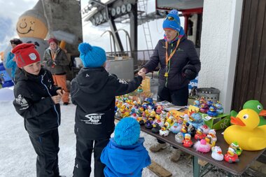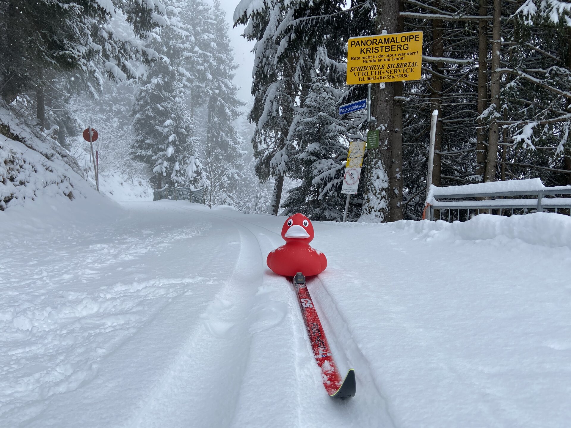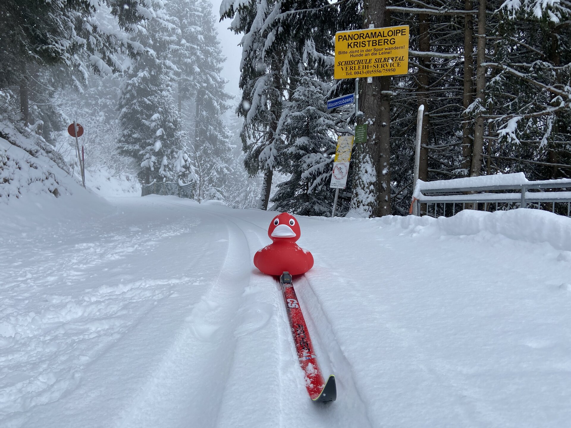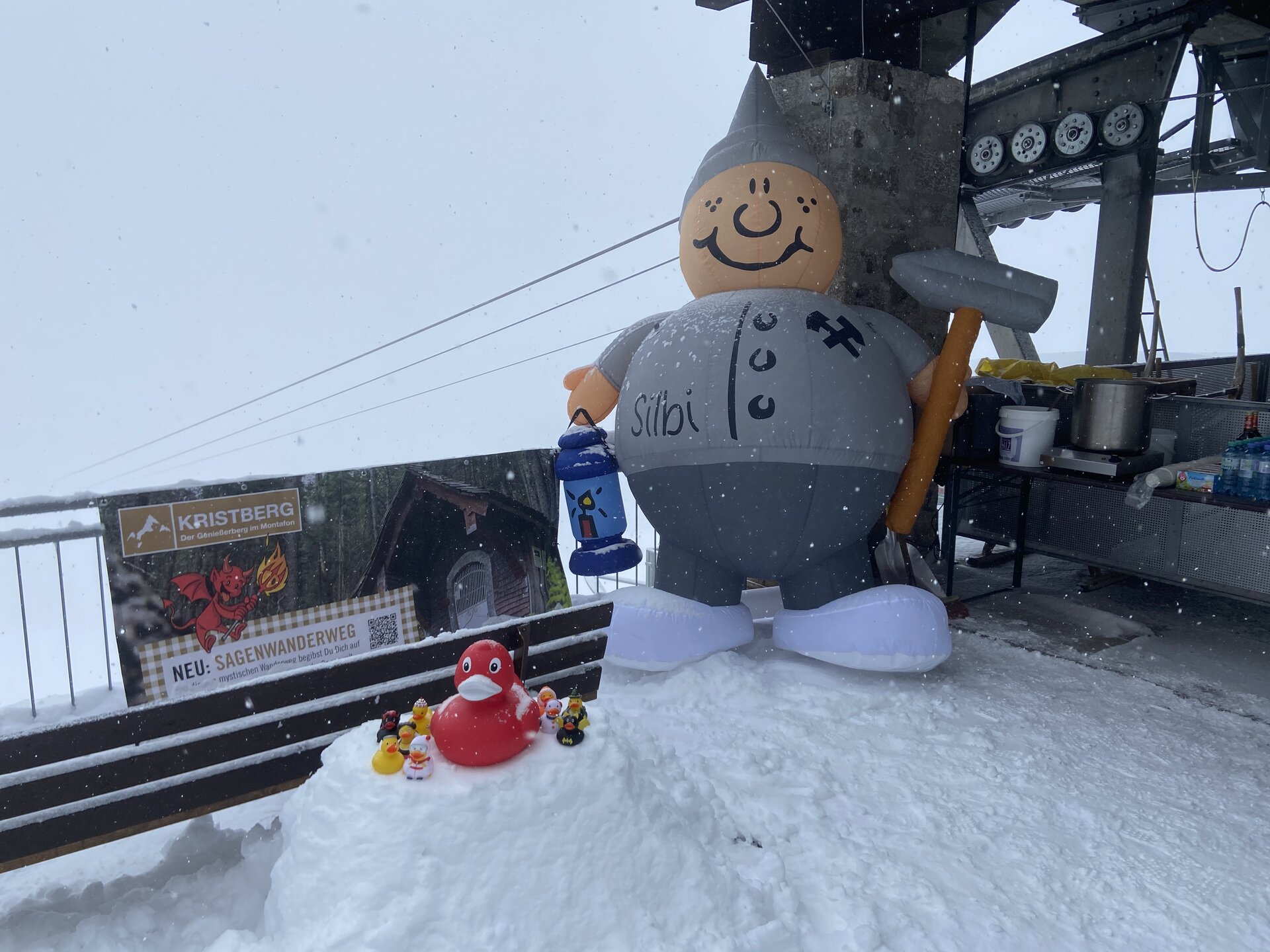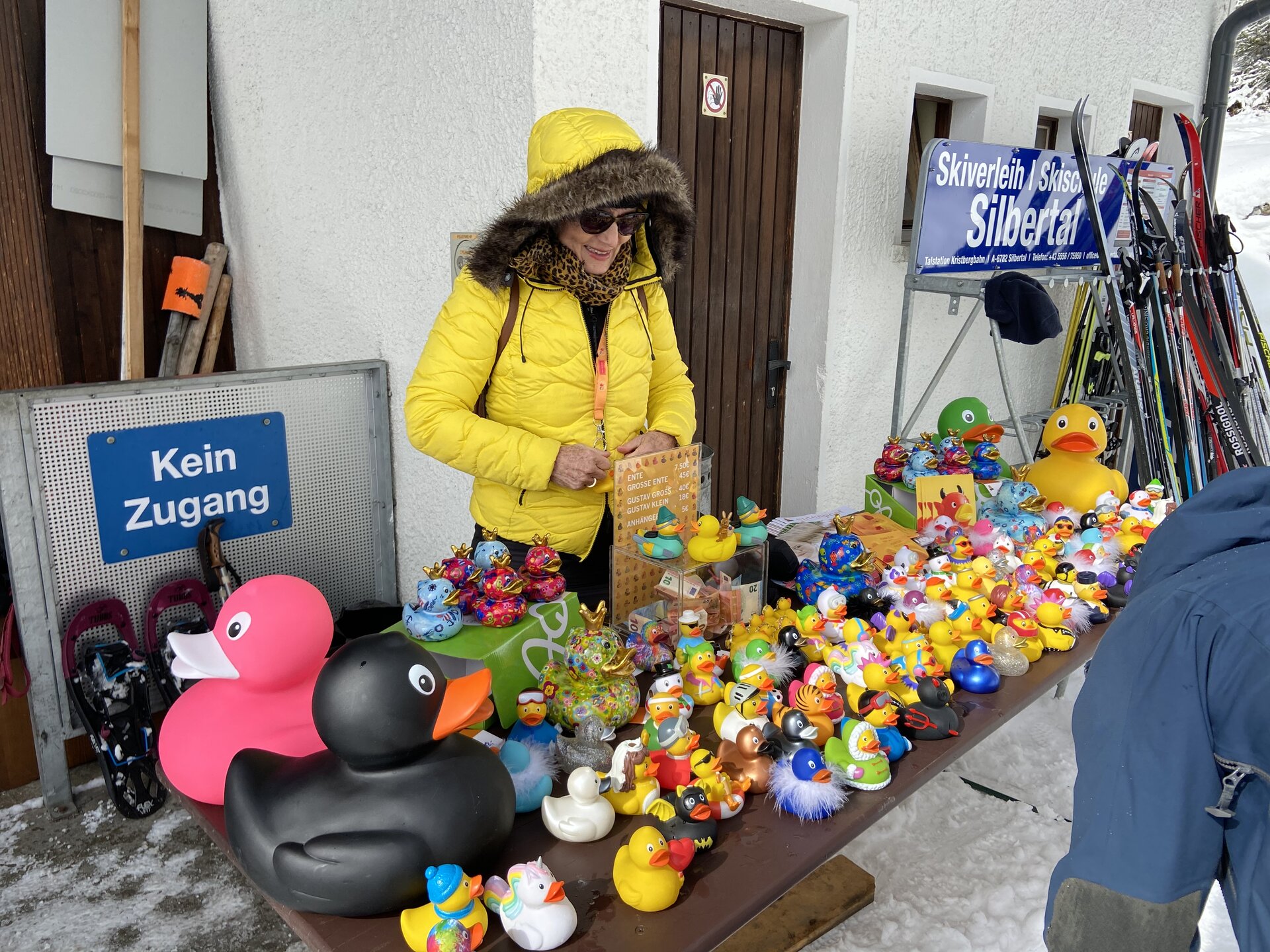 Bei der Bergstation der Montafoner Kristbergbahn war das Team vom „Netz für Kinder“ und Jürgen Zudrell stationiert. Hier gab es neben der "kostenfreien" Langlaufausrüstung auch verschiedene Tee´s, Säfte, Wasser und jede Menge bunte "Enten", das Symbol vom „Netz für Kinder“ (Ente gut alles gut :)).