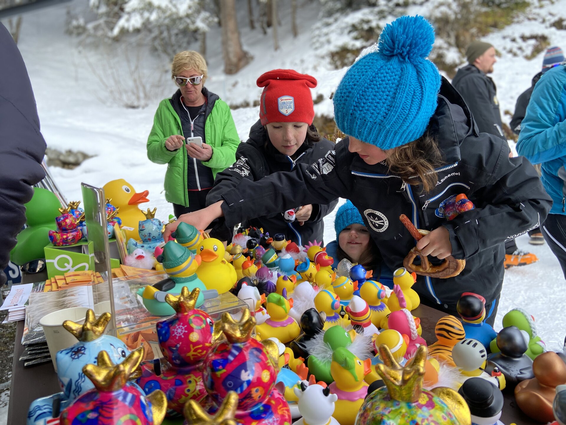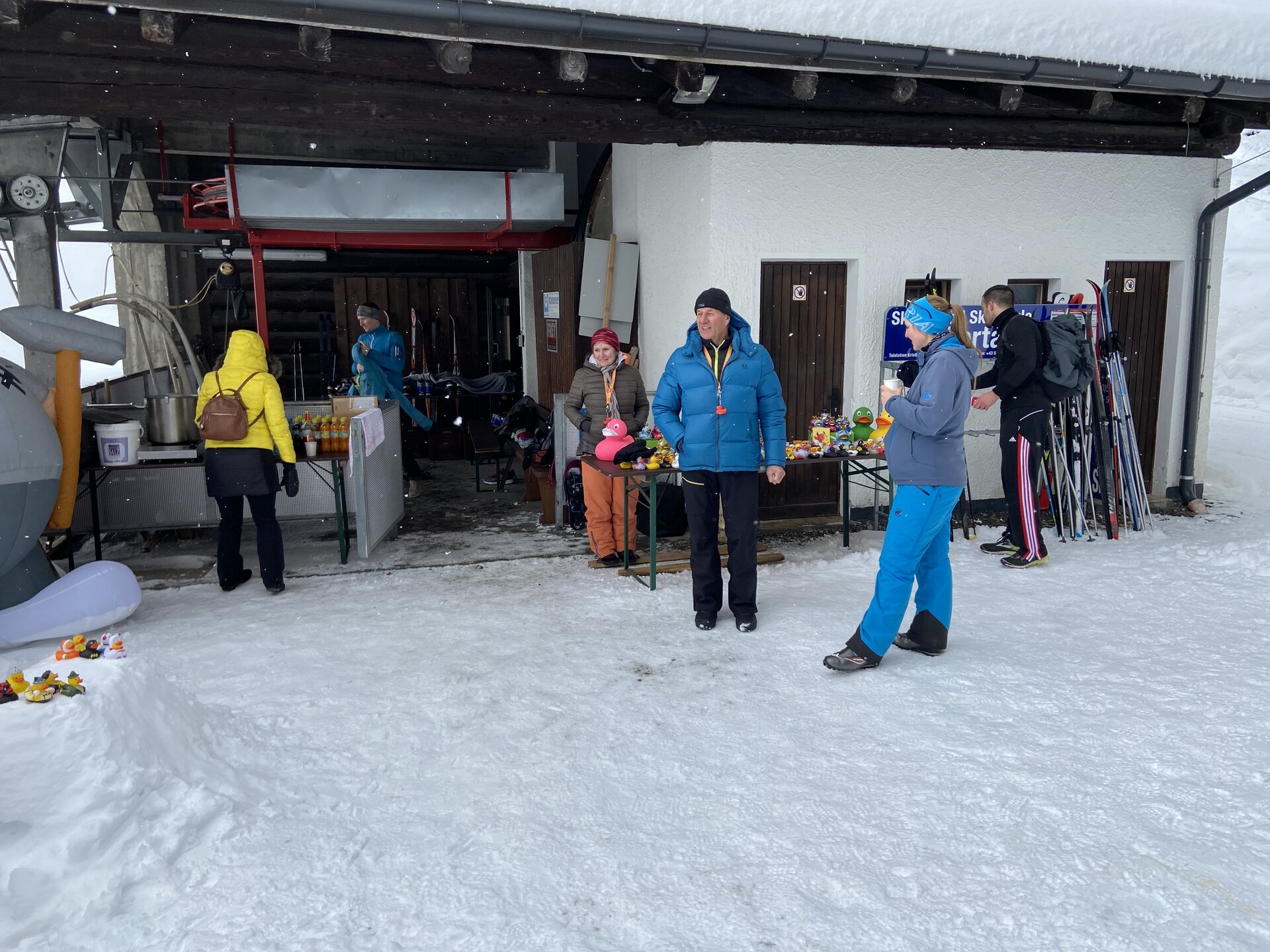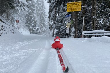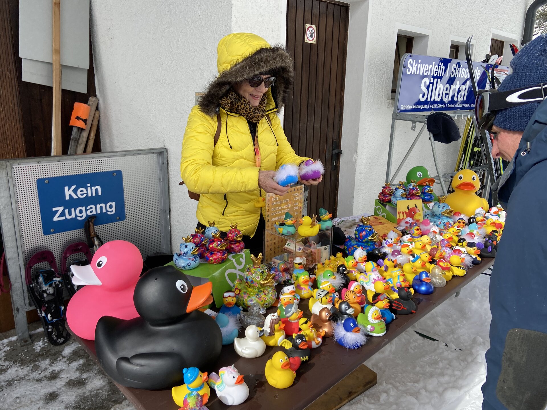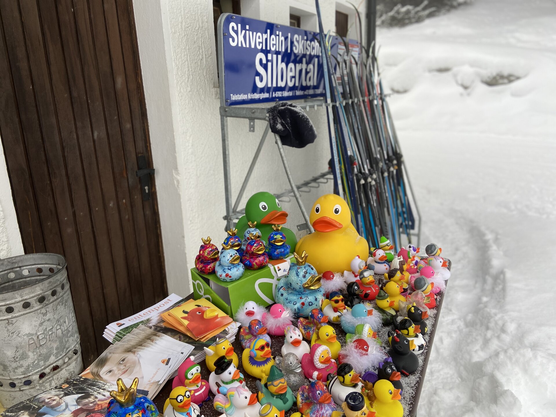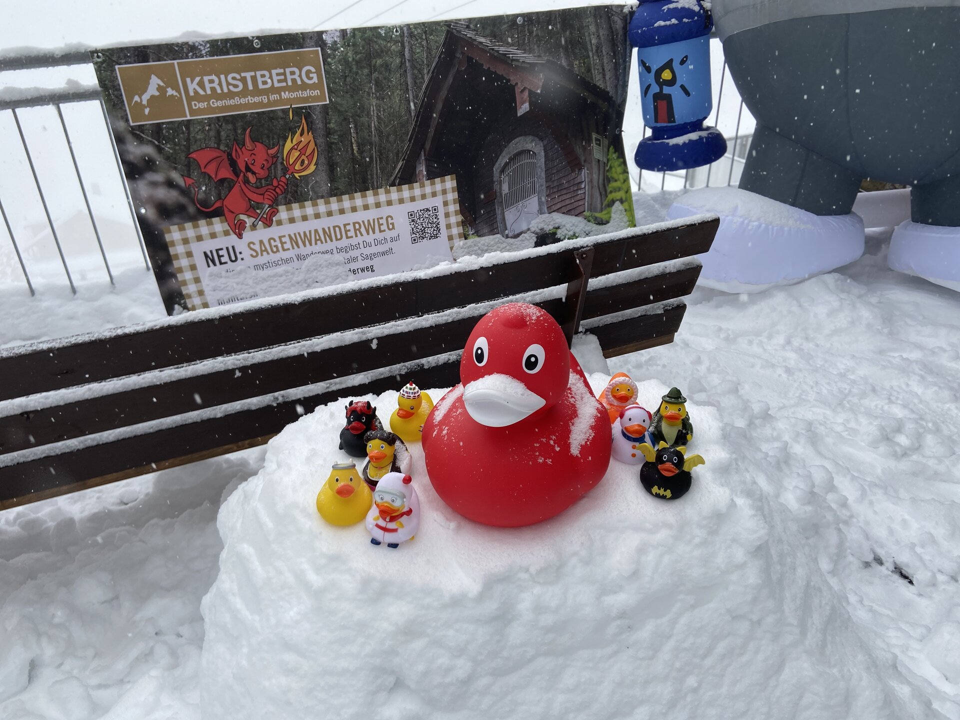 Bei der Bergstation der Montafoner Kristbergbahn war das Team vom „Netz für Kinder“ und Jürgen Zudrell stationiert. Hier gab es neben der "kostenfreien" Langlaufausrüstung auch verschiedene Tee´s, Säfte, Wasser und jede Menge bunte "Enten", das Symbol vom „Netz für Kinder“ (Ente gut alles gut :)).