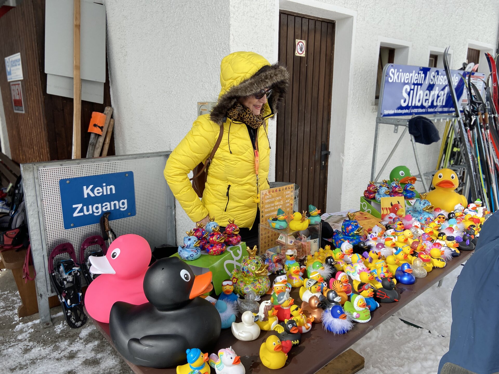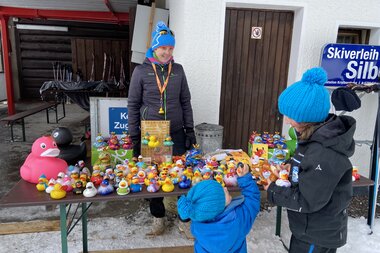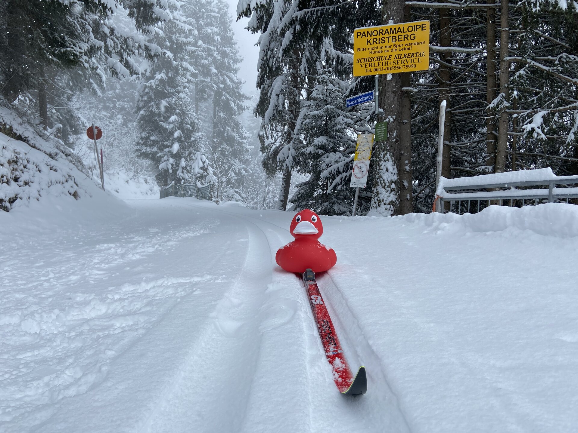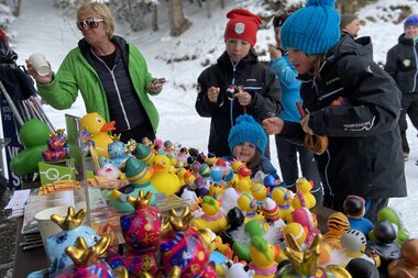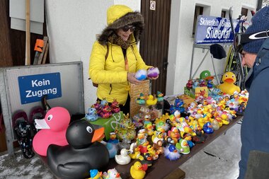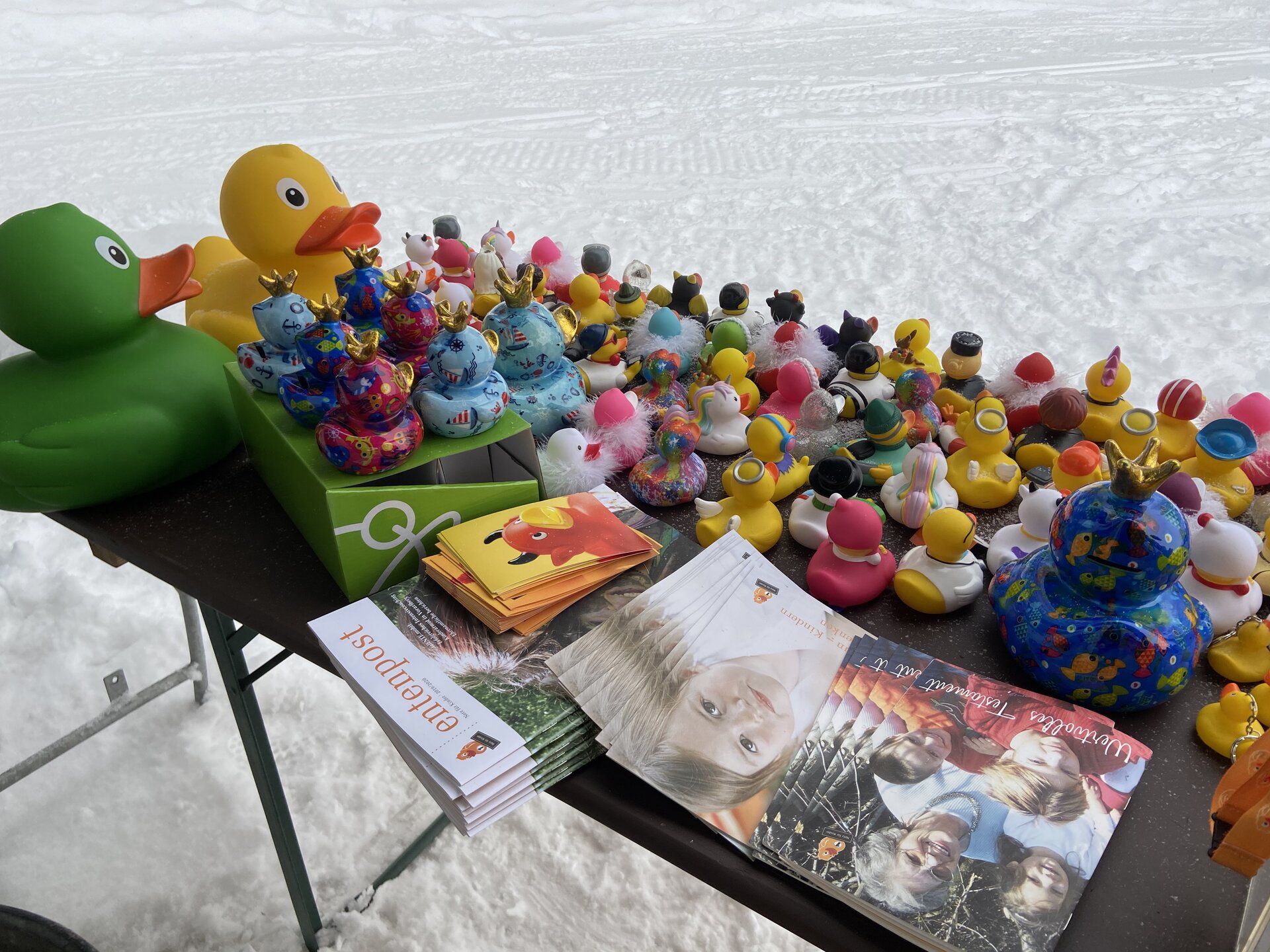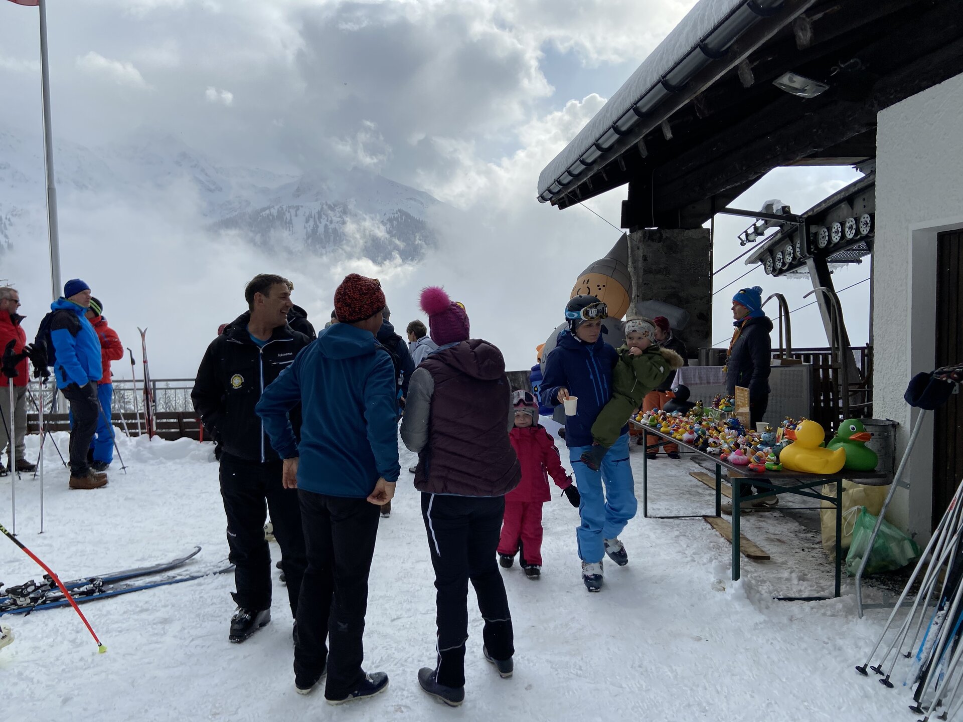 Bei der Bergstation der Montafoner Kristbergbahn war das Team vom „Netz für Kinder“ und Jürgen Zudrell stationiert. Hier gab es neben der "kostenfreien" Langlaufausrüstung auch verschiedene Tee´s, Säfte, Wasser und jede Menge bunte "Enten", das Symbol vom „Netz für Kinder“ (Ente gut alles gut :)).
