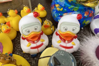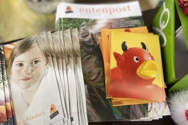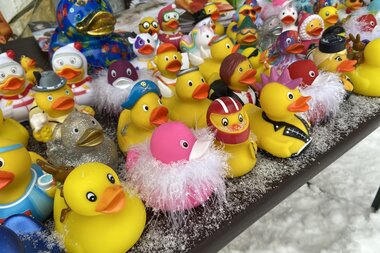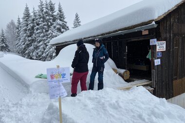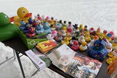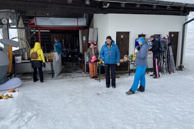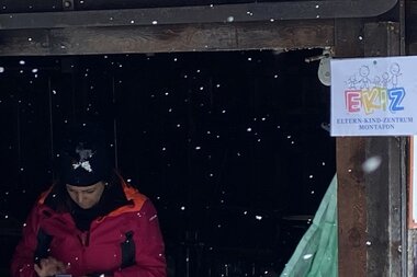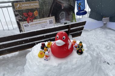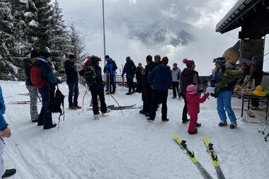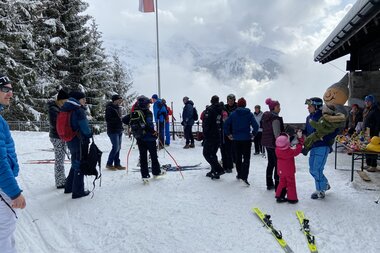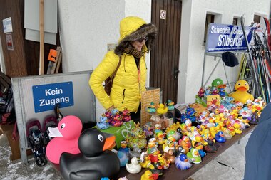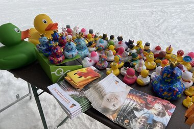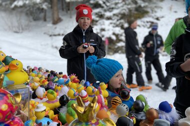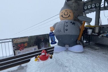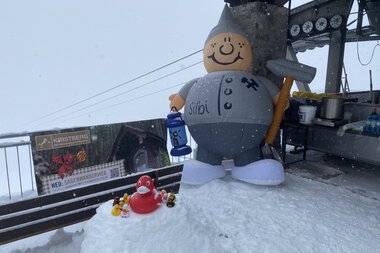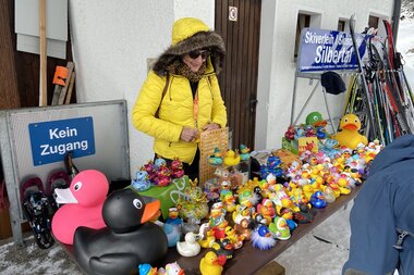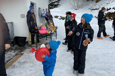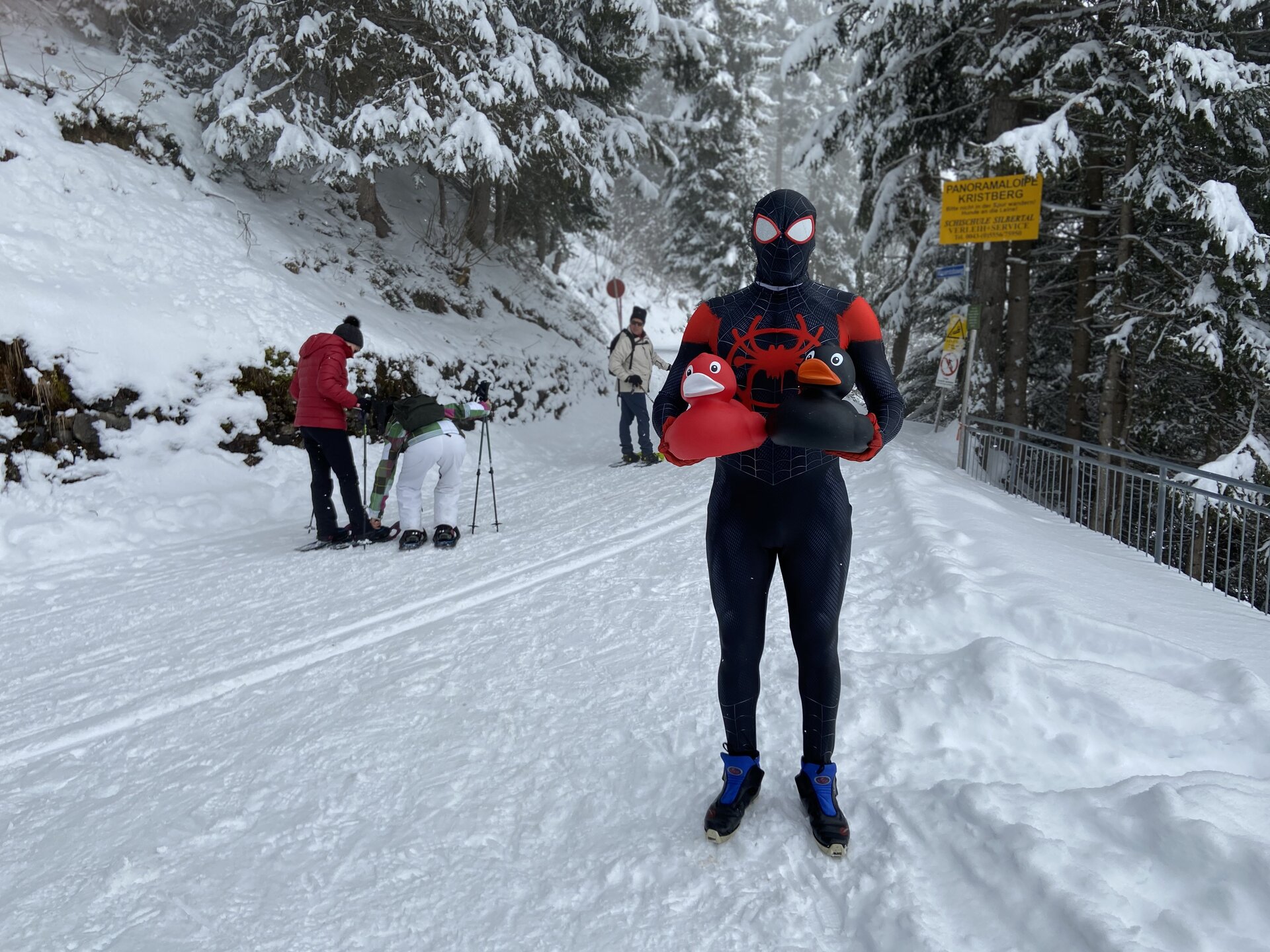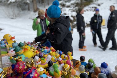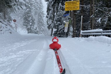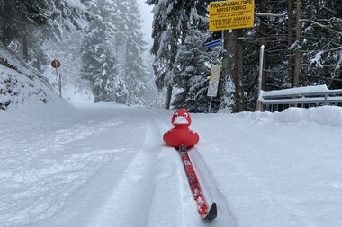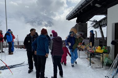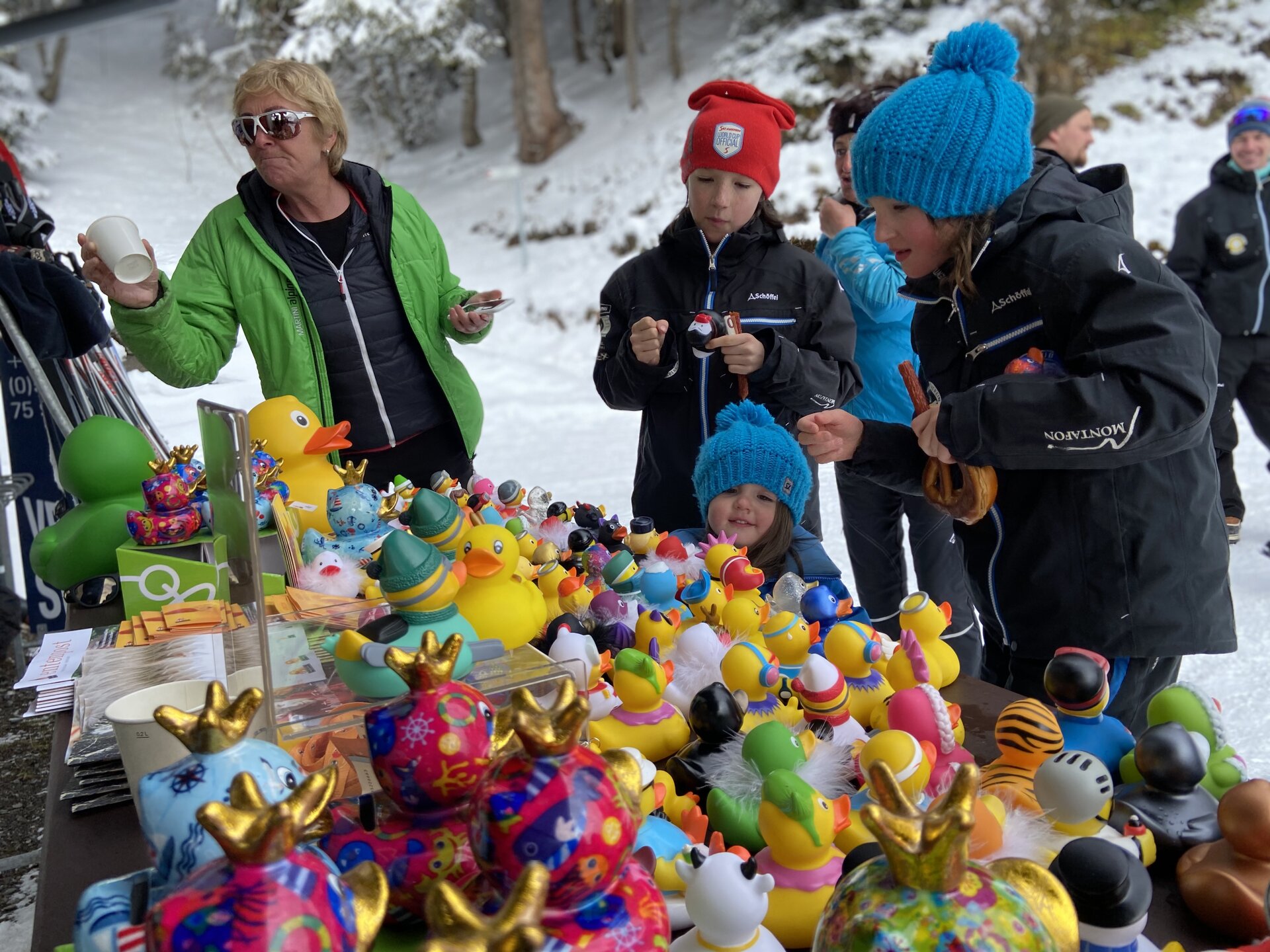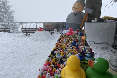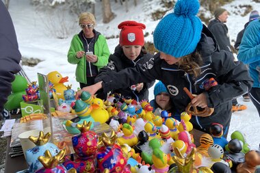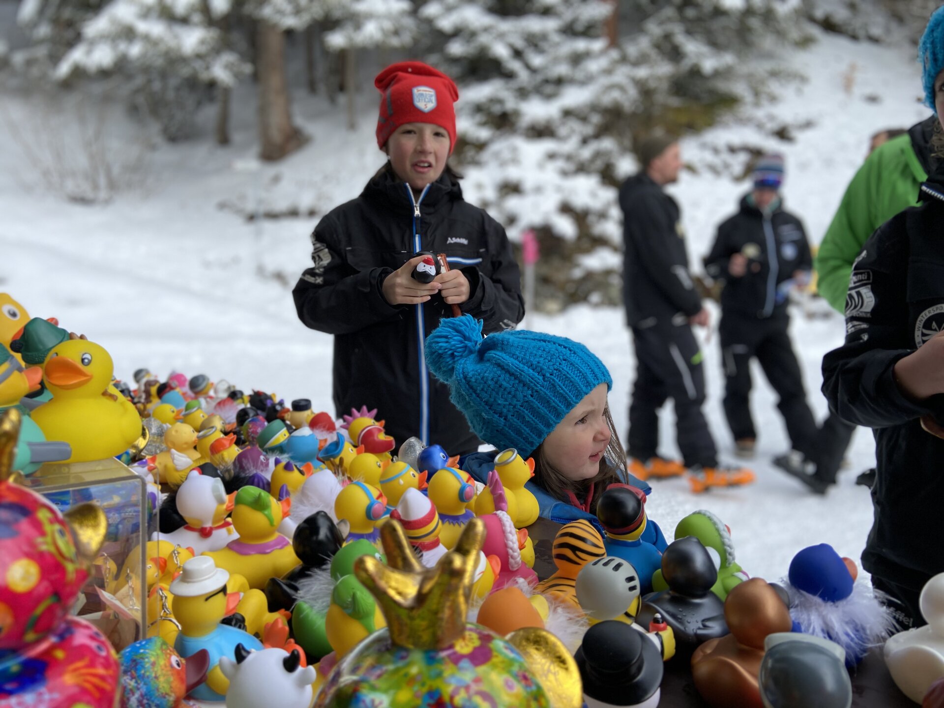 Bei der Bergstation der Montafoner Kristbergbahn war das Team vom „Netz für Kinder“ und Jürgen Zudrell stationiert. Hier gab es neben der "kostenfreien" Langlaufausrüstung auch verschiedene Tee´s, Säfte, Wasser und jede Menge bunte "Enten", das Symbol vom „Netz für Kinder“ (Ente gut alles gut :)).