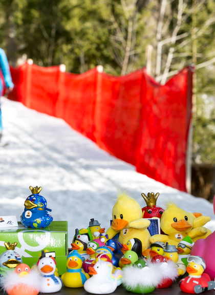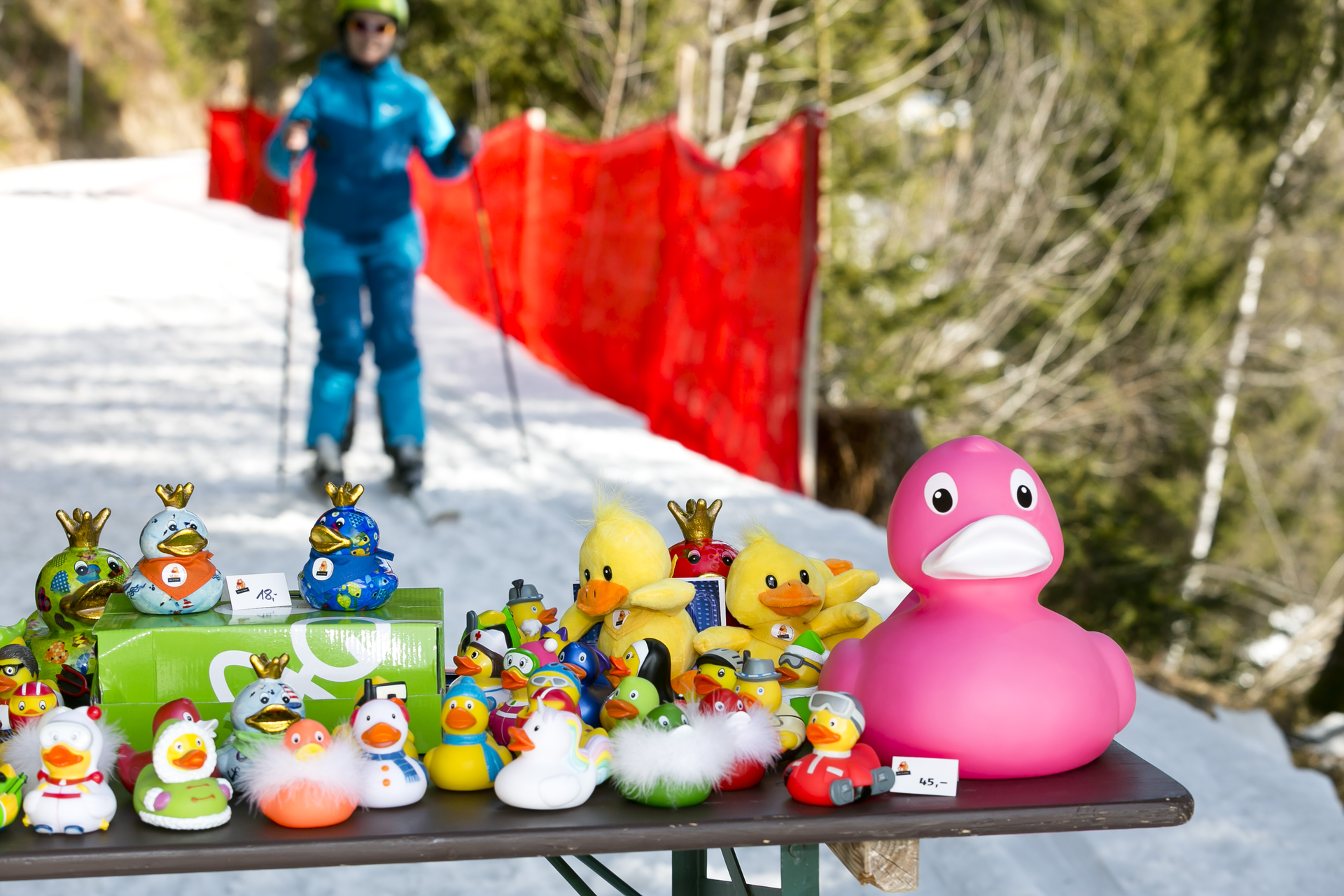 Bei der Bergstation der Montafoner Kristbergbahn war das Team vom „Netz für Kinder“ und Jürgen Zudrell stationiert. Hier gab es neben der "kostenfreien" Langlaufausrüstung auch verschiedene Tee´s, Säfte, Wasser und jede Menge bunte "Enten", das Symbol vom „Netz für Kinder“ (Ente gut alles gut :)).