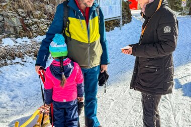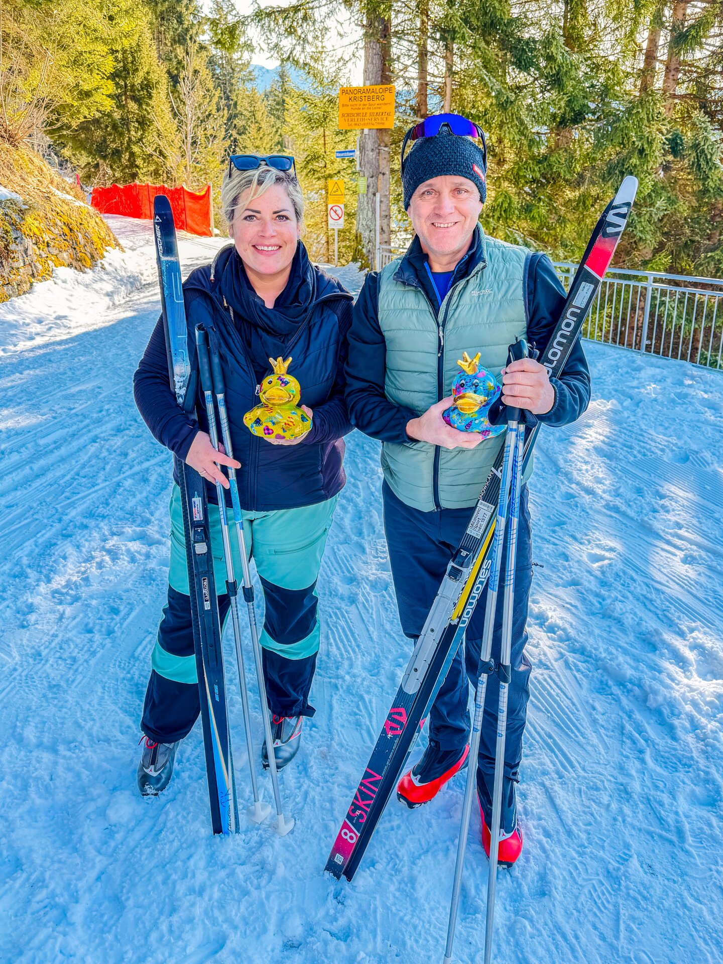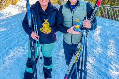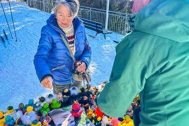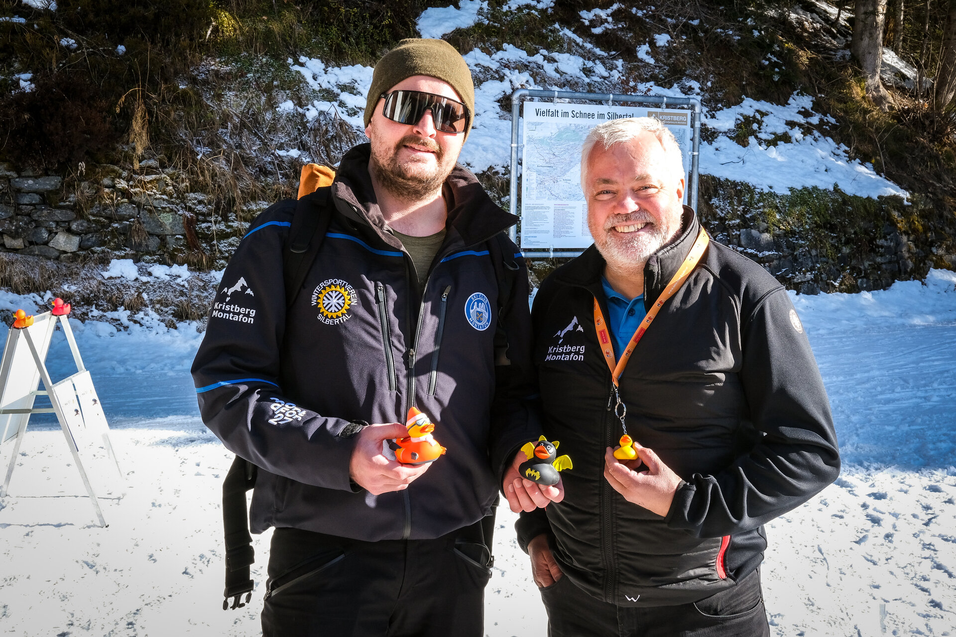Bei der Bergstation der Montafoner Kristbergbahn war das Team vom „Netz für Kinder“ und Jürgen Zudrell stationiert. Hier gab es neben der "kostenfreien" Langlaufausrüstung auch verschiedene Tee´s, Säfte, Wasser und jede Menge bunte "Enten", das Symbol vom „Netz für Kinder“ (Ente gut alles gut :)).