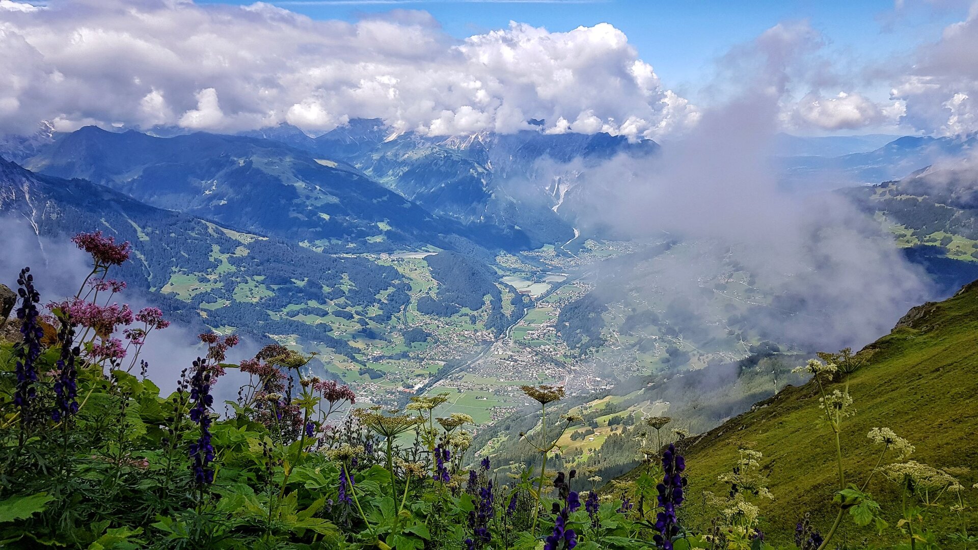 Die ca. 1.800 Höhenmeter ins Tal verlangen einem noch einiges ab und sind nicht zu unterschätzen! Ein recht steil abfallender Grashang führt zur Netzaalpe hinab. Der Balbierbach begleitet uns auf unserem Weg, wo wir uns des Öfteren am kühlen Nass erfreuen. Unterhalb der Alpe gabelt sich nochmals der Weg, links führt er nach Manigg, rechts vom Bach nach Netzamaisäß. Wir entscheiden uns für die rechte Variante, bis der Blick zur Madererspitze irgendwann schwindet und es zunehmend bewaldet wird. Nach etlichen Kehren und an den malerischen Maisäßhütten vorbei kommen wir schlussendlich in Gortipohl an und nehmen den nächsten Bus zur Zamang Bahn, wo wir das Auto abgestellt haben.