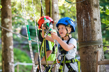 Mit elf unterschiedlichen Parcours in drei Schwierigkeitsstufen kommt im Waldseilpark-Golm garantiert keine Langeweile. Der größte Hochseilgarten Vorarlbergs fordert Mut, Geschicklichkeit und Schwindelfreiheit. – und dass bei bis zu 16 Metern über dem Boden.  Dank Kletterausrüstung und Sicherheitsschulung bist Du immer auf der sicheren Seite.