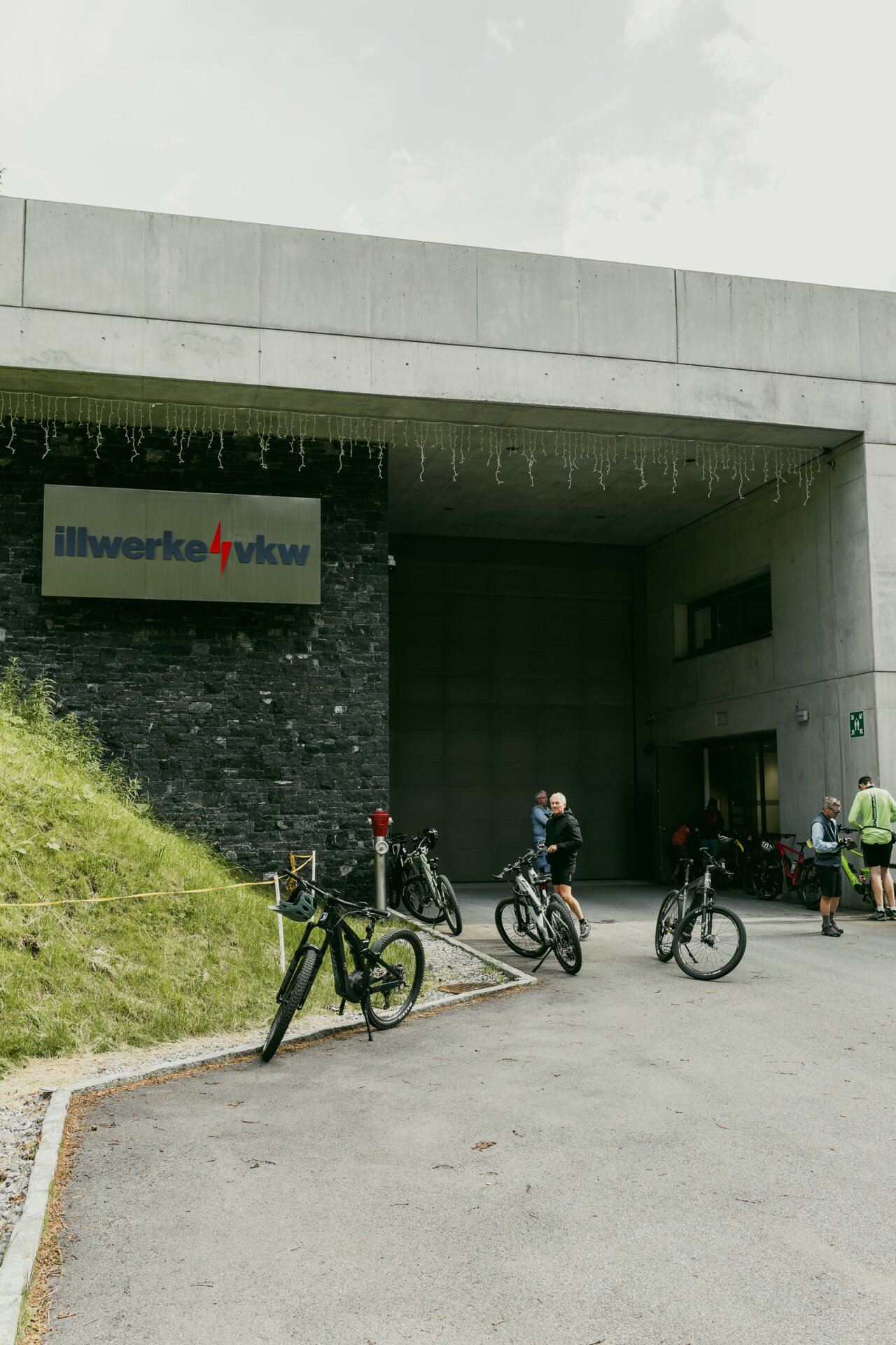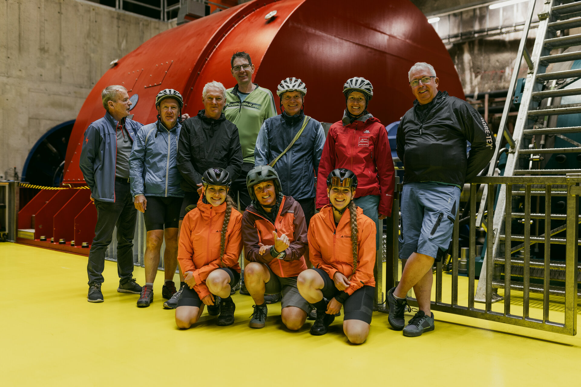 Und dann gings los zu DEM Highlight der Wasserkraftrunde: Der Besichtigung des Obervermuntwerk II Stollen. Ein Mitarbeiter der Vorarlberger Illwerke ist mit dem Auto vorausgefahren und wir mit den Rädern hinterher – und das 800 Meter weit in den Stollen hinein. Es war bitterkalt! Es ging immer leicht bergab und die Luftfeuchtigkeit war immens – jeder hat vor Kälte gezittert. Wir wussten durch den Film schon in etwa, was uns erwartet, aber in der Wirklichkeit war es einfach nochmal so viel beeindruckender, als wir es uns vorgestellt haben.