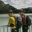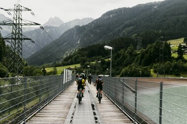 Um 9 Uhr in der Früh haben wir uns mit den anderen aus unserer Gruppe und den Guides Ramona und Annette bei der Tourismusinformation in Schruns getroffen. Nach einer kurzen Einweisung und Erklärung was wir heute so vorhaben ging es auch schon los. 75 km und 1.600 Höhenmeter standen auf dem Plan – daher waren wir alle mit E-Mountainbikes ausgestattet. Geschlossen in einer Gruppe sind wir erstmal aus dem Ortsinneren hinaus gerollt und immer weiter Fluss aufwärts geradelt.