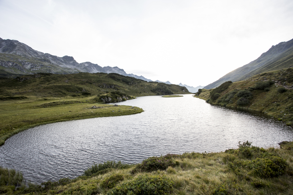 Nach einer kurzen Pause beim Langsee führt Dich der Weg bis ins Schönverwall. Hier geht es rechts hinauf bis zum Verbellner-Winterjöchli. Oberhalb der Scheidseen findest Du die Neue Heilbronner Hütte.
