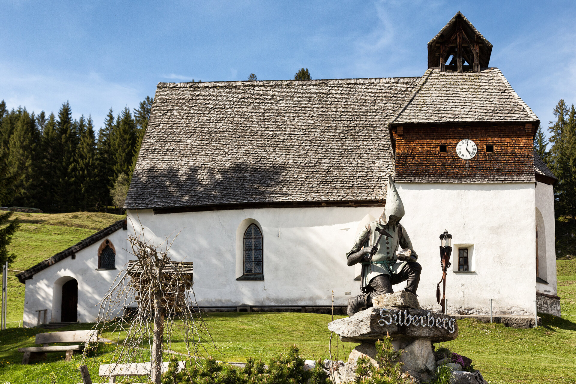 Weiter geht es zur St. Agatha Kapelle am Kristberg, einem spirituellen Ort mit besonderer Ausstrahlung. Die kleine Kirche liegt auf einem sonnigen Hochplateau – und ist die älteste nachweisbare Kirche im Montafon. Schon die Ankunft dort wirkt entschleunigend. In der stillen Atmosphäre der Kapelle, umgeben von Wäldern und sanften Wiesen, wird deutlich, welchen Stellenwert Religion und Rituale früher im Alltag der Bergleute und ihren Familien hatten. Die Führung bringt nicht nur die Architektur näher, sondern öffnet auch den Blick auf das Montafon als kulturellen Resonanzraum.