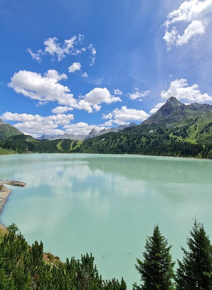 Der erste Höhepunkt ist die Kops-Staumauer – ein technisches Meisterwerk inmitten hochalpiner Landschaft. Bei einer geführten Begehung lernst Du die Geschichte und Funktion der imposanten Staumauer kennen. Besonders eindrücklich: der Gang über die Mauerkrone mit Blick auf den türkisfarbenen Kopsstausee und die umliegenden Gipfel. Hier wird sichtbar, wie präzise Ingenieurskunst und Landschaftsschutz im Montafon zusammenspielen.