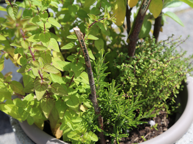 Zitronenmelisse, Pfefferminze, Mojito bzw. Hemingway-Minze, Salbei, Oregano, Thymian, Rosmarin