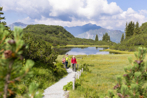 Habitats of absolute rarity, unique plant and animal species, and an impressive view of the Silvretta – on this hike through the three European protected areas of Schuttfluren Tafamunt, Wiegensee, and Verwall, your nature guide will show you a natural environment that is truly one of a kind. The heart of the hike is a unique moor biotope at 1,900 m above sea level: the Wiegensee, the oldest natural reservoir in the Montafon and Austria's most beautiful place in 2021. On the way to the Verbellaalpe and the Zeinissee, we hike through various stages of moorland, tall forb communities, and alpine pastures. The tour is rounded off with an impressive bus ride back to Partenen via the Silvretta High Alpine Road, with views of the three reservoirs Kops, Silvretta, and Vermunt. Information about the closure of the Silvretta High Alpine Road: If the Bielerhöhe is closed on the day of the hike, we will walk back to the Tafamunt mountain station or via Ganifer to Partenen. The hiking guide will let you know during the hike. In cooperation with the Verwall-Klostertaler Bergwälder nature conservation association – an exclusive tour for those who are looking for more than just an ordinary hike.