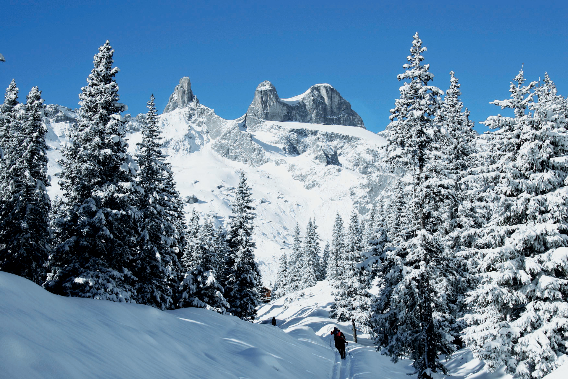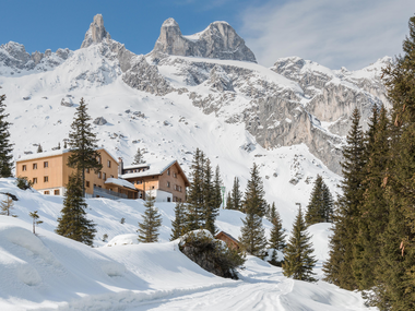 On this winter hike, you are surrounded by the striking Rätikon peaks Sulzfluh, Drusenfluh, and Drei Türme.