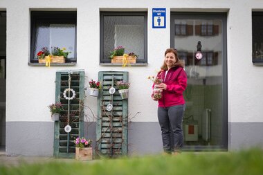 Luises besondere Leidenschaft ist das Dekorieren und der Blumenschmuck der WC-Anlagen sowie in der Gemeinde.