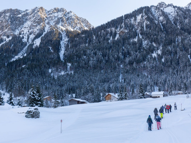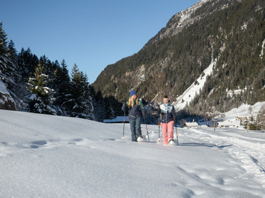 Together with a hiking guide, you will explore the idyllic winter wonderland of Partenen.